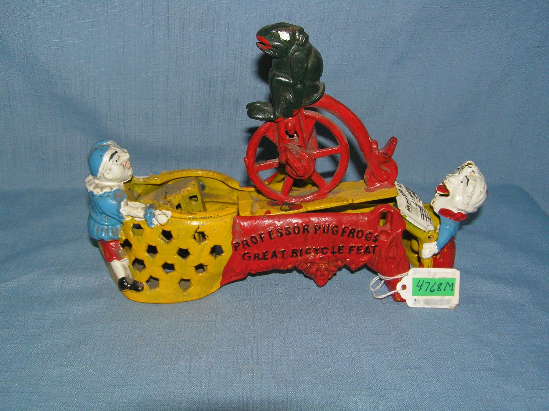 Professor Pugfrog great bicycle feat cast iron mechanical bank circa 1960s est. value $300.00-$400.00