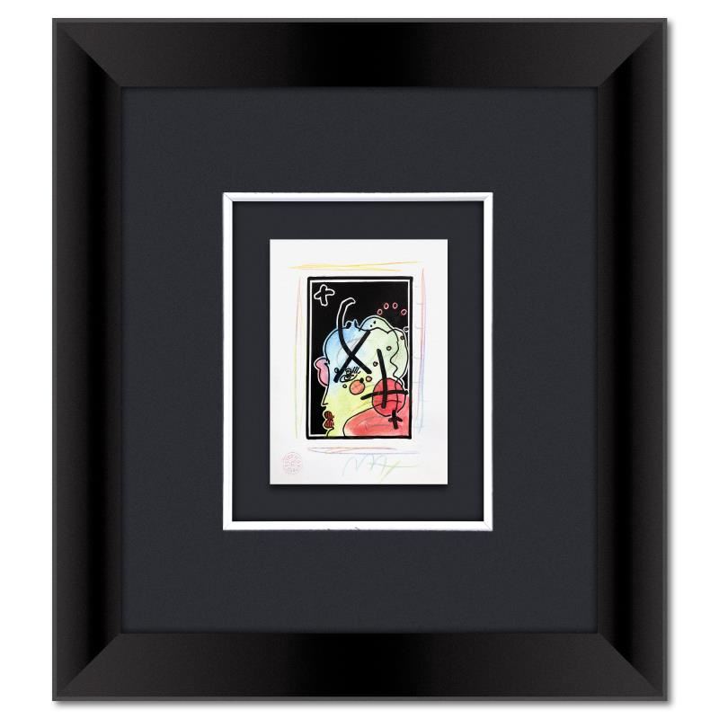 "Profile" is a one-of-a-kind mixed media on paper, hand signed by Peter Max. The piece comes custom framed with a backside cutout to display Peter Max Studio registration number 370676 certifying authenticity. Measures approx. 22.5" x 21.5" (frame), 8" x 6" (image).