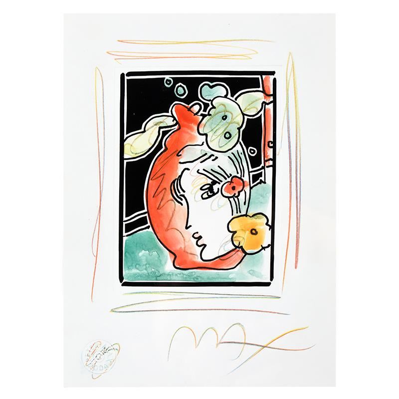 "Profile with Vase" is a one-of-a-kind mixed media on paper, hand signed by Peter Max. Includes Certificate of Authenticity from Peter Max Studios. This piece comes custom framed. Measures approx. 16.5" x 18.5" (frame), 6" x 8.5" (image).