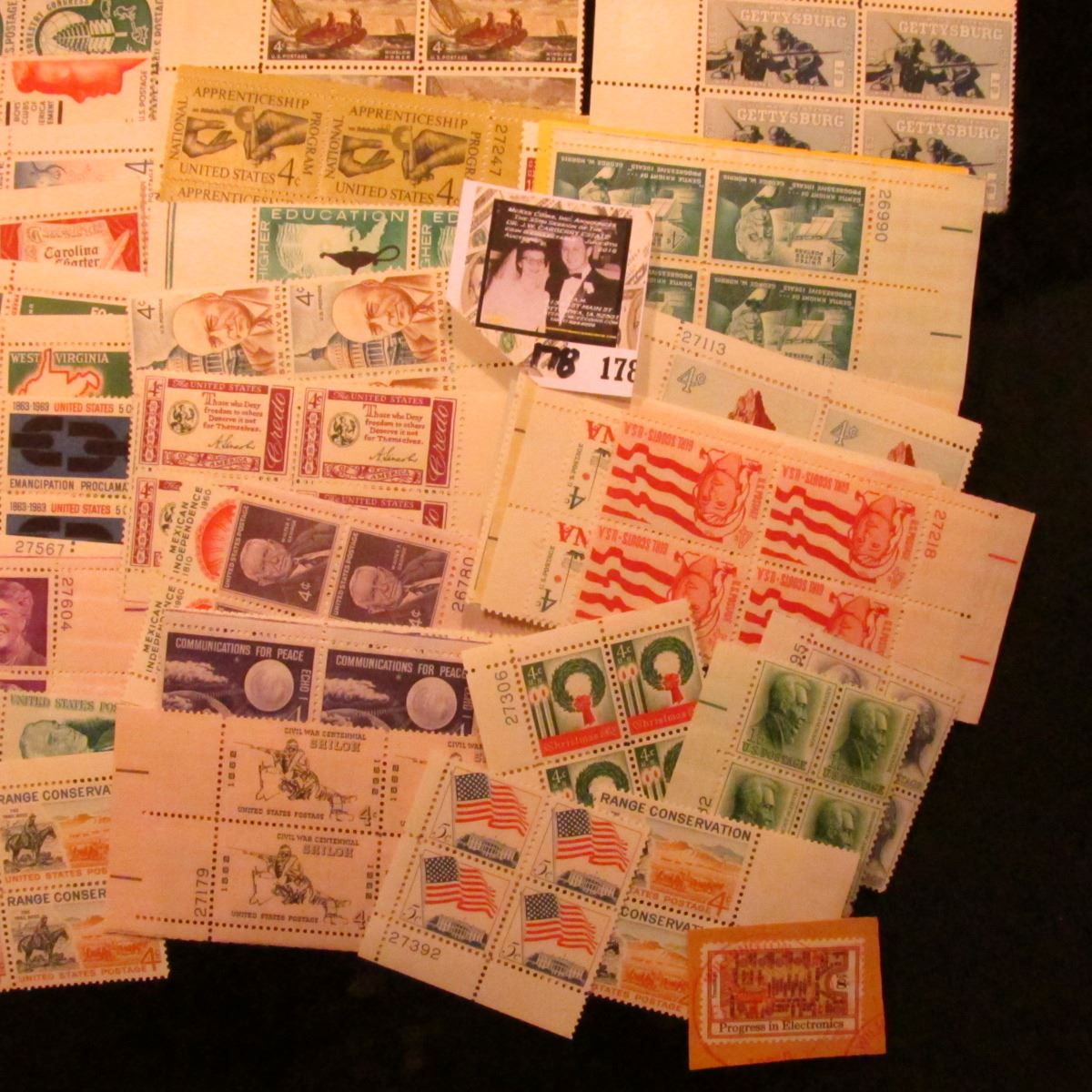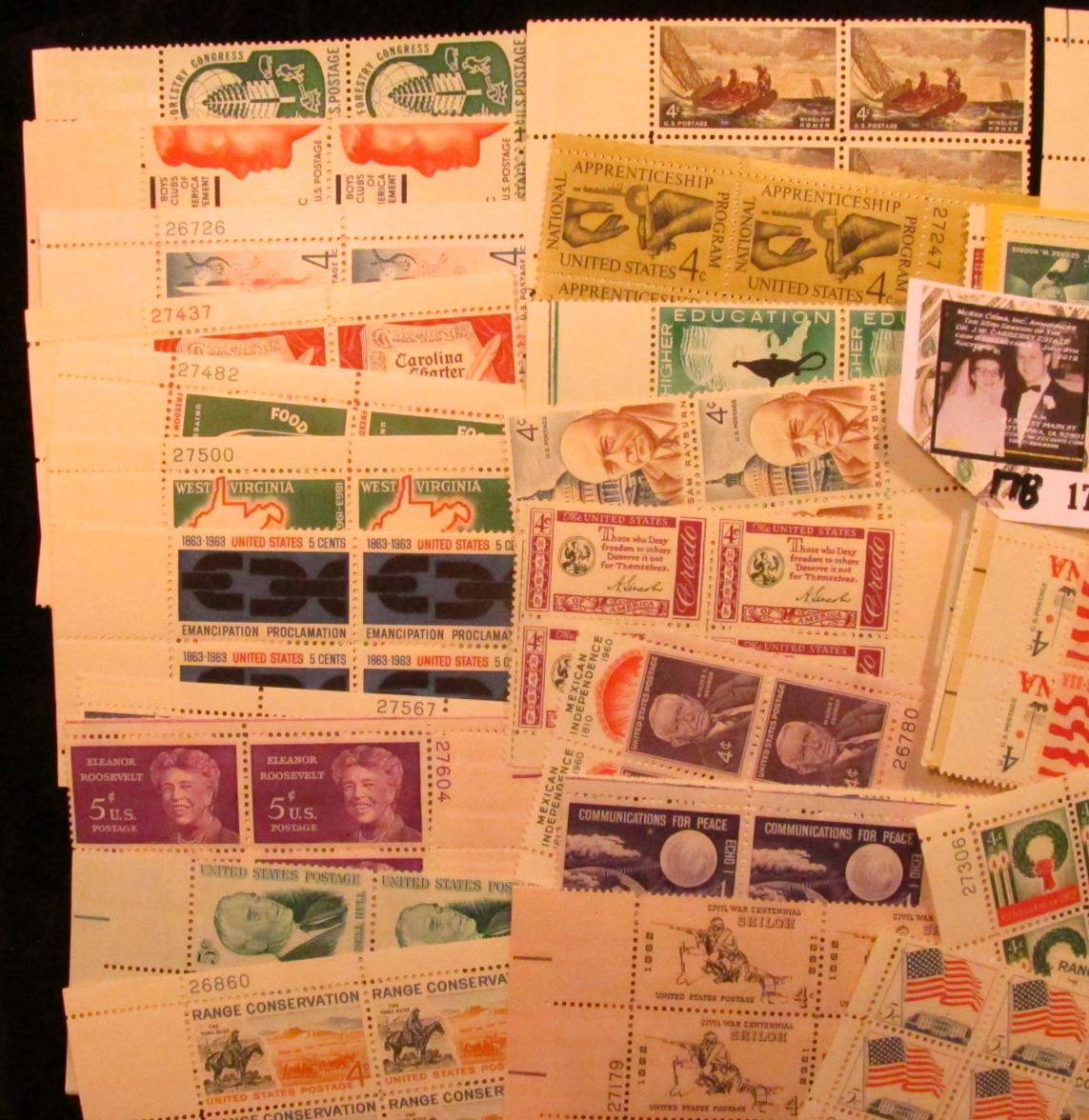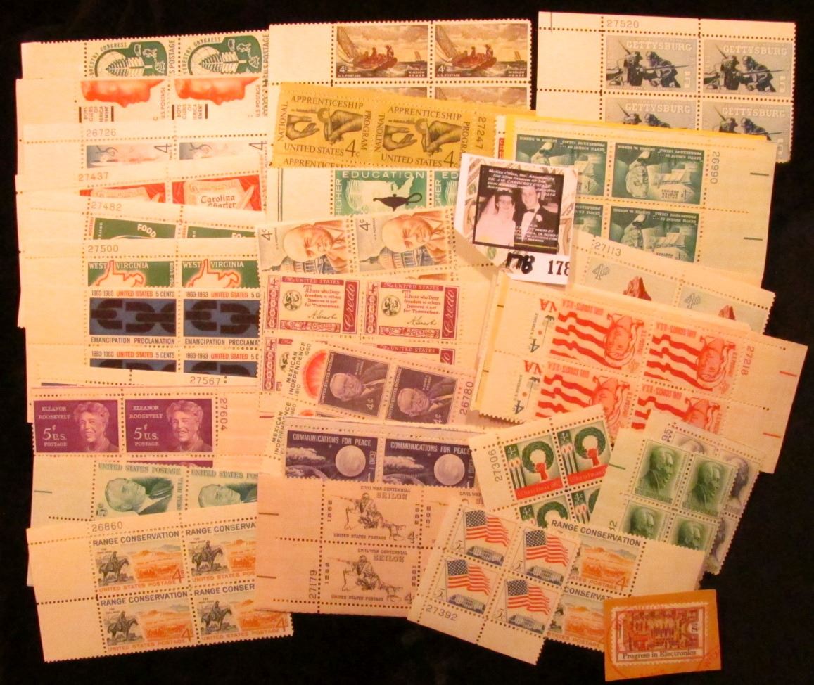 "Progress in Electronics" cancelled stamp; and a large group of Mint pairs & Plate blocks of U.S. Stamps, uncanceled and unused.