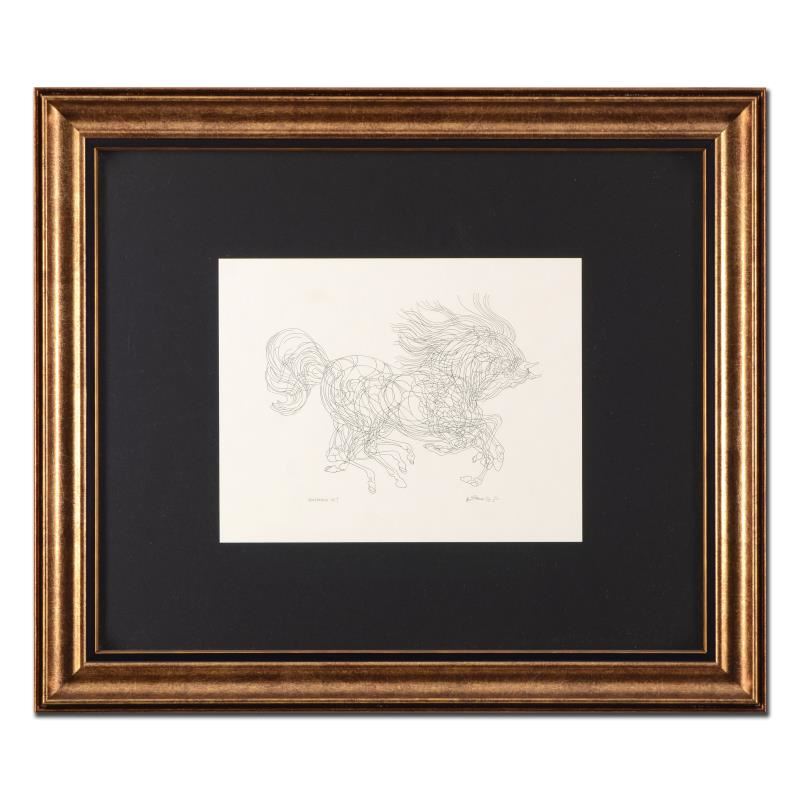 "Progression AZJ" is an original drawing on paper by Guillaume Azoulay, hand signed by the artist. This piece comes framed. Includes Letter of Authenticity. Measures approx. 28.5" x 24.5" (frame), 11" x 8" (image).