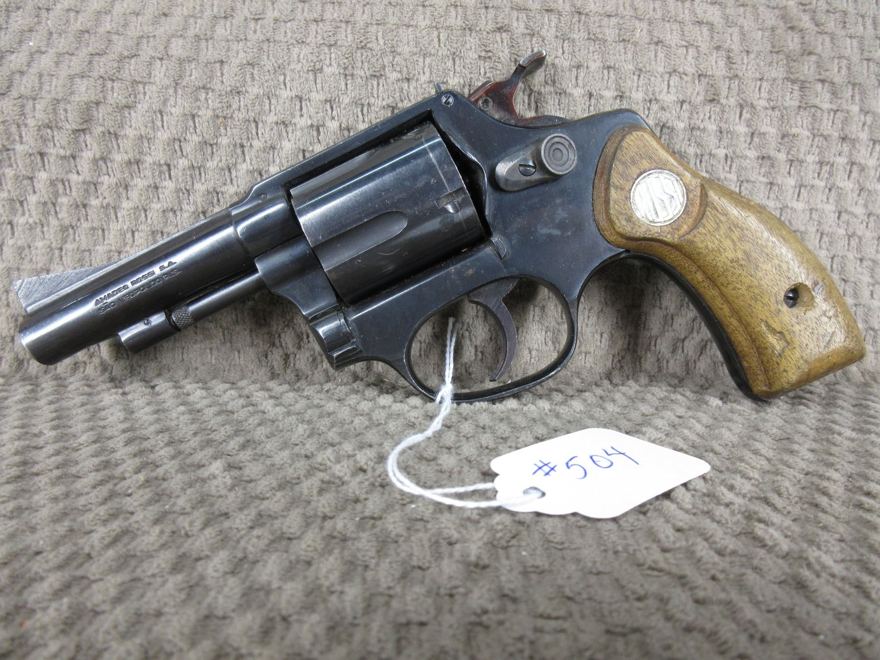 Prohib - Rossi Model 68 in 38 Special - This six shot double action revolver with flip out cylinder appears to be in good working order. Barrel is 76MM, bluing is good with small scratches, rifling is very good, fixed sights, wood is good some marks and gouges.