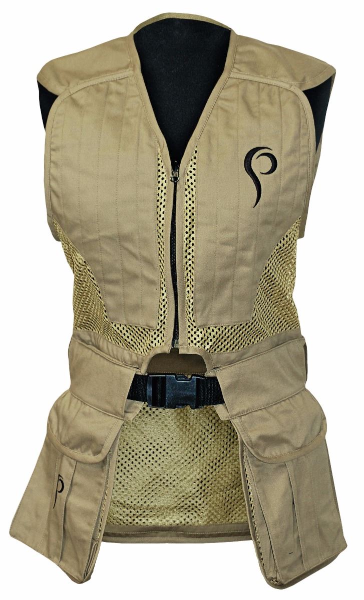 Looking for the ultimate in functional shooting vest? Prois delivers the goods! The Competitor vest is constructed of heavyweight cotton/poly/canvas and lightweight poly mesh. Bilateral shoulder padding integrated to accommodate left or right dominant shooters. Internal pockets on each side of the chest to accommodate gel packs- we suggest the Kick-Eze pads- also available at Prois! Front expandable cargo pockets with magnetic closures for easy access. Rear mesh pouch for holding spent hulls with zipper for easy emptying engineered with lightweight 100% polyester mesh. Adjustable cam straps and buckle at waistline. Attractive, feminine cut. So, you don’t care to use a full vest for all of your shooting outings? THE PROIS COMPETITOR VEST UNZIPS AT THE WAIST TO CONVERT INTO A SHOOTING APRON TO ALLOW THE ULTIMATE IN FUNCTION.