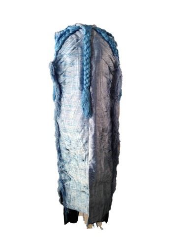 Project Runway All Stars, Season 6, Episode 7: "A Kick in the Astro" - Garment # 682 -Designer: Fabio. Fabio was inspired by Neptune for this challenge. He designed a 2-piece look with a long, light blue jacket that ties at the waist to become a dress, with black leggings underneath. The jacket features braided fringe over the shoulders and the material is a light quilt with a slight sheen.