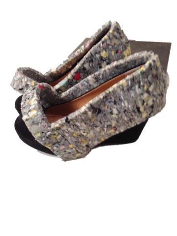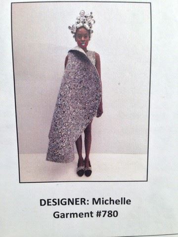 Project Runway All Stars Season 7, Episode 7: Avant-Garde Challenge-garment # 780 - Designer: Michelle. This was the runner up look of the episode. Michelle named this dress "Sensory Deprivation". It is a two-piece dress with single shoulder jacket that has a curved circle collar on one side. The entire dress and shoes are made from carpet padding. The intent was to feel as if at any time you can revert to a cocoon. Judges called it innovative with a "wow" factor and stunning with an element of surprise and reveal.