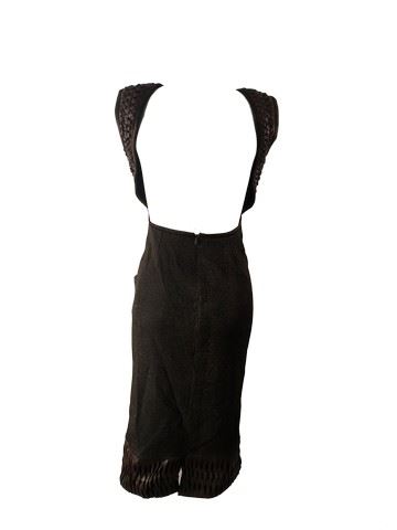 Project Runway All Stars, Season 7, Episode 5: "On the Prowl" -Garment# 756 -Designer: Biddell. Biddell used an Antelope for his inspiration. He designed a brown, metallic knee length, fitted, cap sleeve dress with brown braided leather at the shoulders, waist and the bottom. The back of the dress is completely open.
