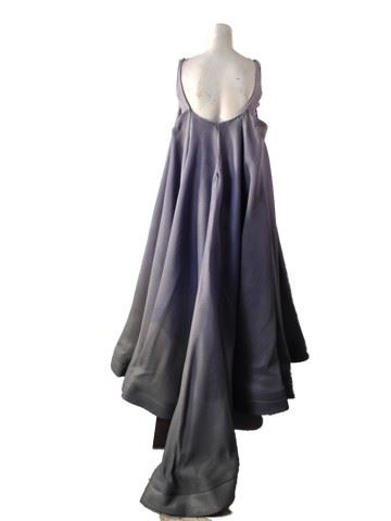 Project Runway All Stars, Season 7, Episode 7: "Pure Imagination" -Garment # 779 - This was the Avant Garde challenge. Designer: Irina. Irina designed a grey cut out shoulders, tank gown made of mesh and with built in wing skeletons to make it expand outward like wings. In this design, Irina wanted to see if she could marry fashion and flight.