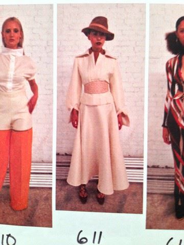 Project Runway All Stars- Season 6, Episode 1: "Rookies vs. Veterans" - Garment # 611- Designer: Stanley (rookie). Stanley designed an off- white, long sleeve, cropped and pleated blazer with a long, off white, swinging skirt with a tan scarf worn as a choker.