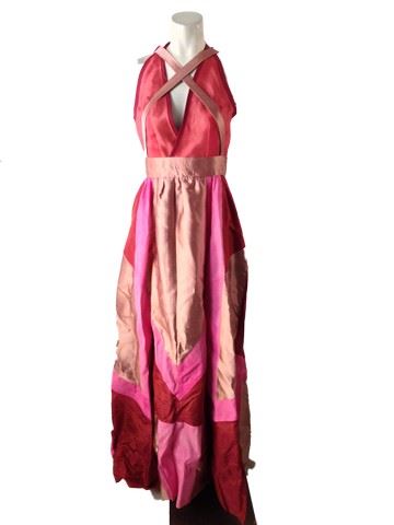 Project Runway All Stars, Season 6, Episode 5: "Fashion's New Superheroes" - Garment # 664 - Designer: Amanda. The theme of the challenge was to create an elegant look that celebrates a woman's inner superhero by using a Rodial product as the secret power inspiration. Amanda's inspiration for her design was Rodial's Pink Diamond. Her secret power was the she reflects on all the goodness in the world and makes people happy. She designed a color blocked, angular pattern using a variety of shades of pink. It is a long dress with criss cross straps going across the front of the chest, with a pink mesh material running down as back straps to create an oval cut out back. Amanda was eliminated from the show in this episode.