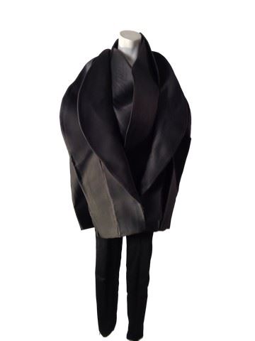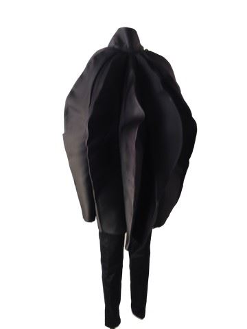 Project Runway All Stars- Season 6, Episode 7: "A Kick in the Astro" -Garment # 681 -Designer: Ken. This is the episode when designs were based on the cosmos, the Avant-Garde challenge. This design is based on the black hole. Ken designed a 2-piece look with a black, round, strutted, pleated and bubbled cape with black leggings.