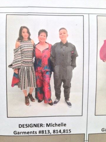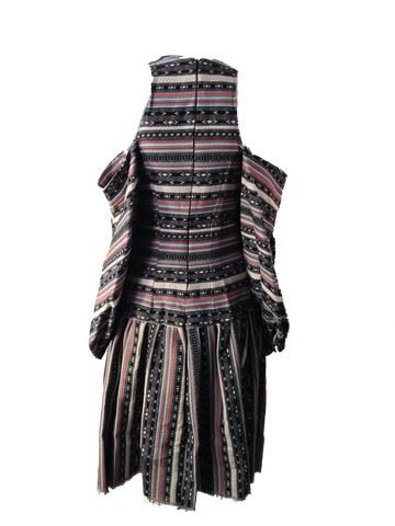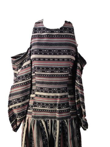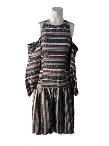 Project Runway All Stars- Season 7 Episode 12: "Modern Families"- Garment # 813- Designer: Michelle. The theme of this challenge was to design three looks for a modern family. This is one of Michelle's designs for the daughter. It is a Navajo printed, cut out shoulder, long sleeve dress.