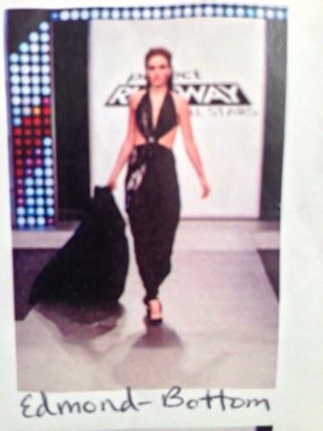 Project Runway All Stars, Season 6, Episode 5: "Fashion's New Superheroes" -Garment # 658 -Designer: Edmond. The theme of the challenge was to create an elegant look that celebrates a woman's inner superhero by using a Rodial product as the secret power inspiration. Edmond used Rodial's Contouring product as his inspiration for this ensemble. His superpower was to give confidence to those who were unaware of what they were capable of doing. It is a 2 -piece look with a stretchy, long black dress that has dark silver sequins and side cutouts at the torso. Comes with an unattached, long black faux leather cape with enhanced shoulders. This design ranked low with the judges because it felt as though it had been done before.