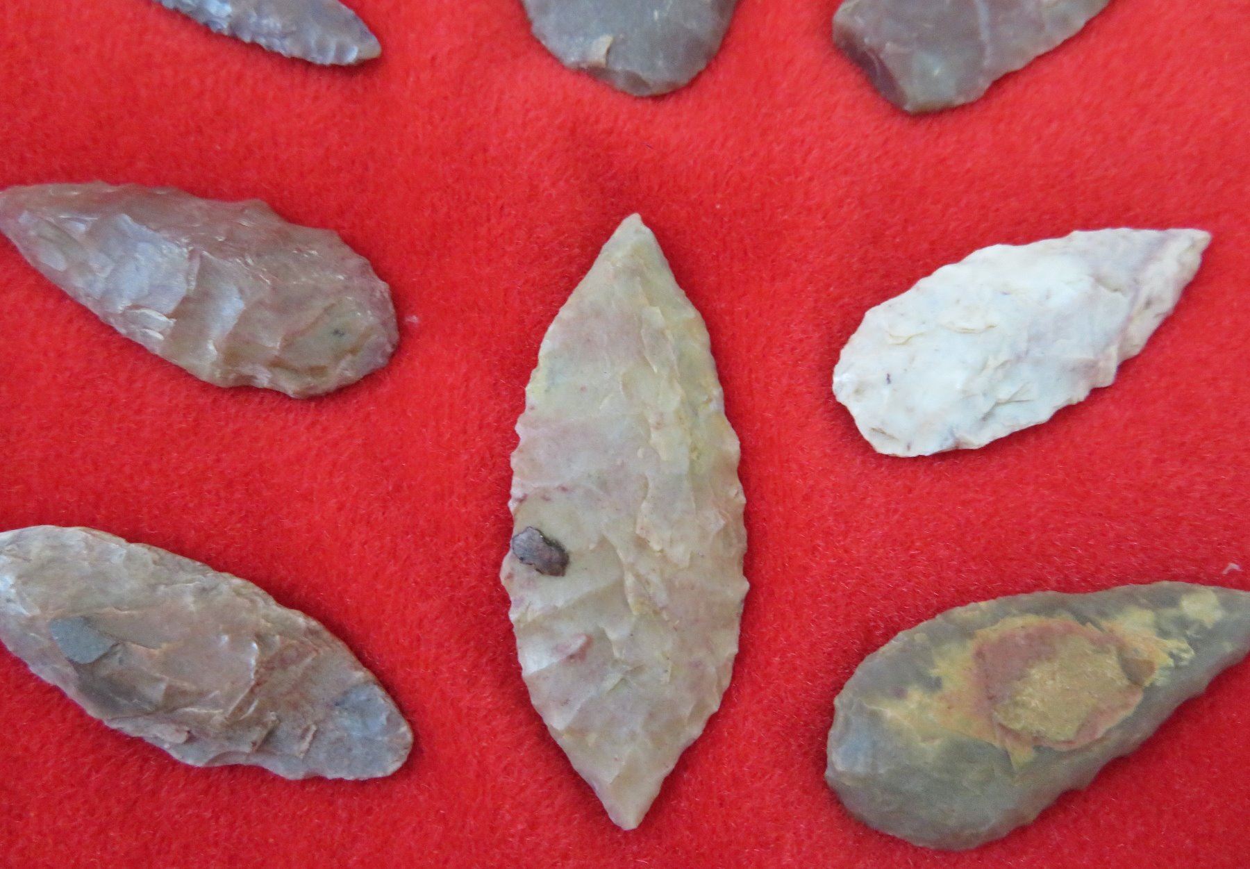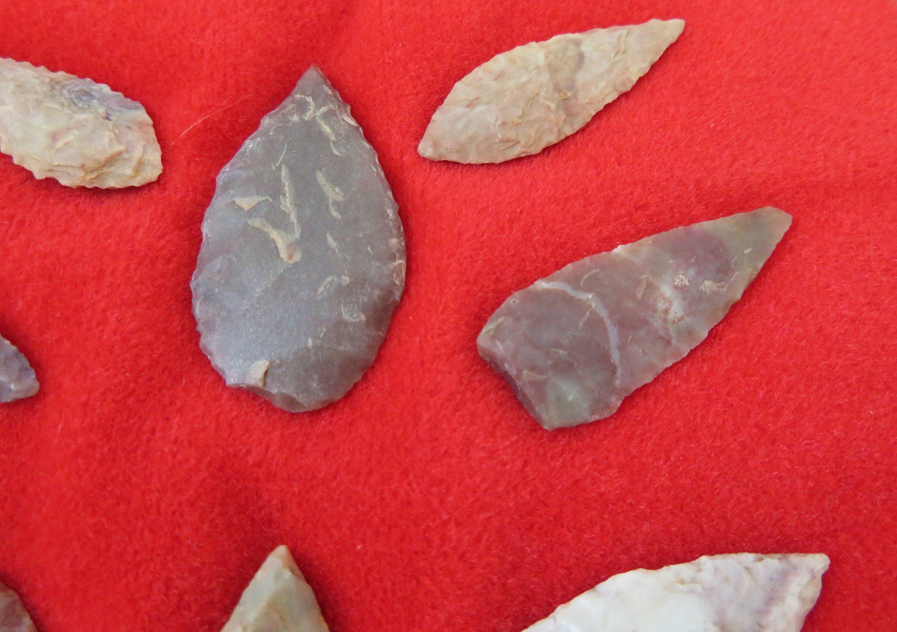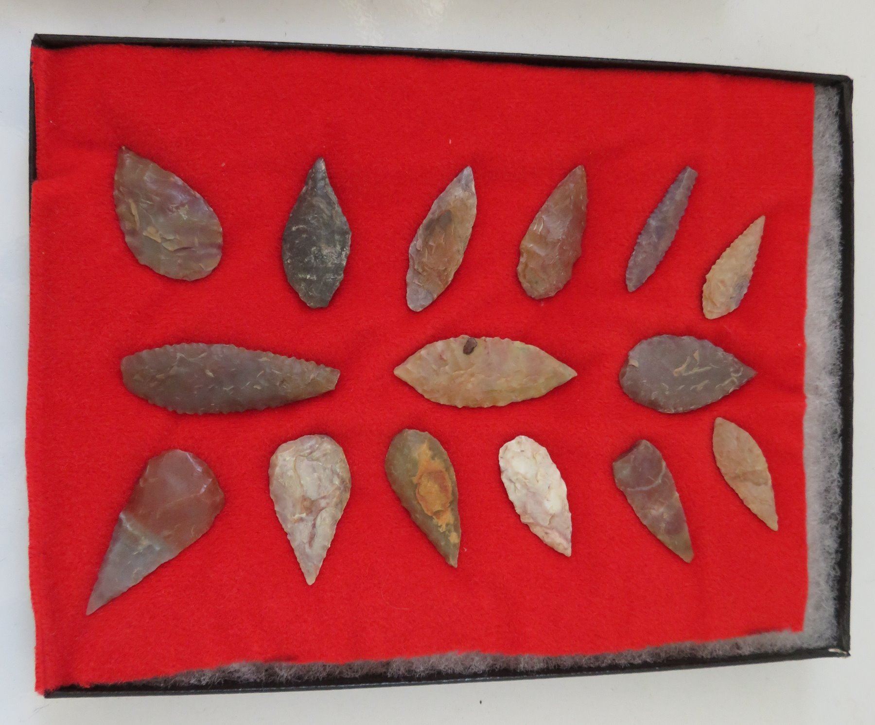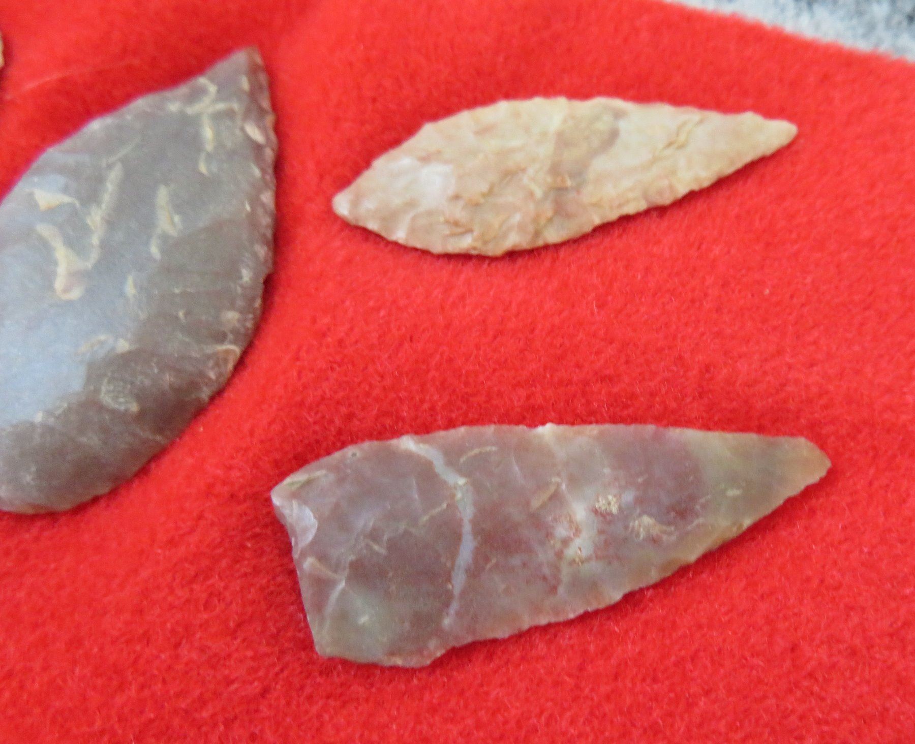 Projectile Points, neolithic period. Made of chert, the largest measures 2". Sahara Desert, Africa. Frame not included. Condition: Good, see images. Shipping: $16.50 w/insurance and signature.