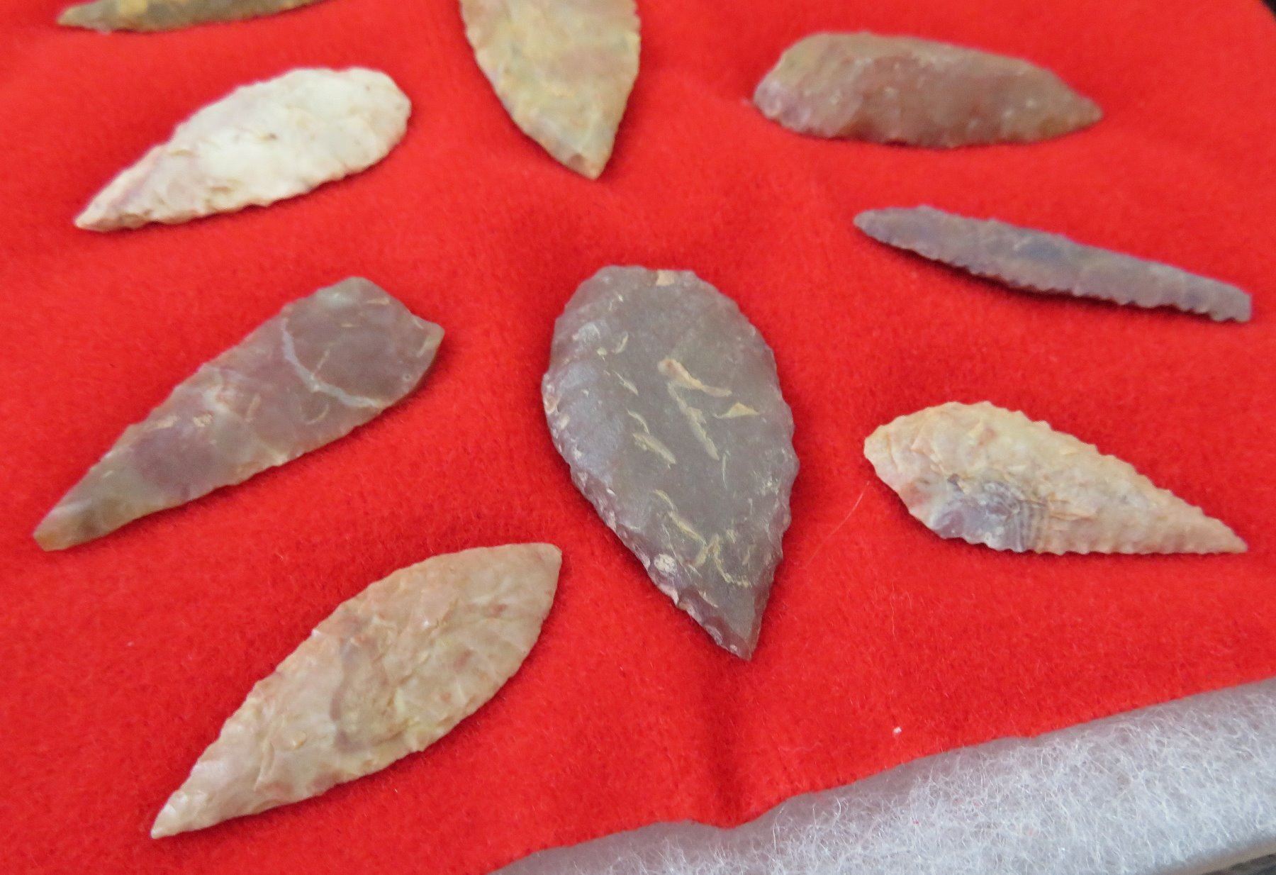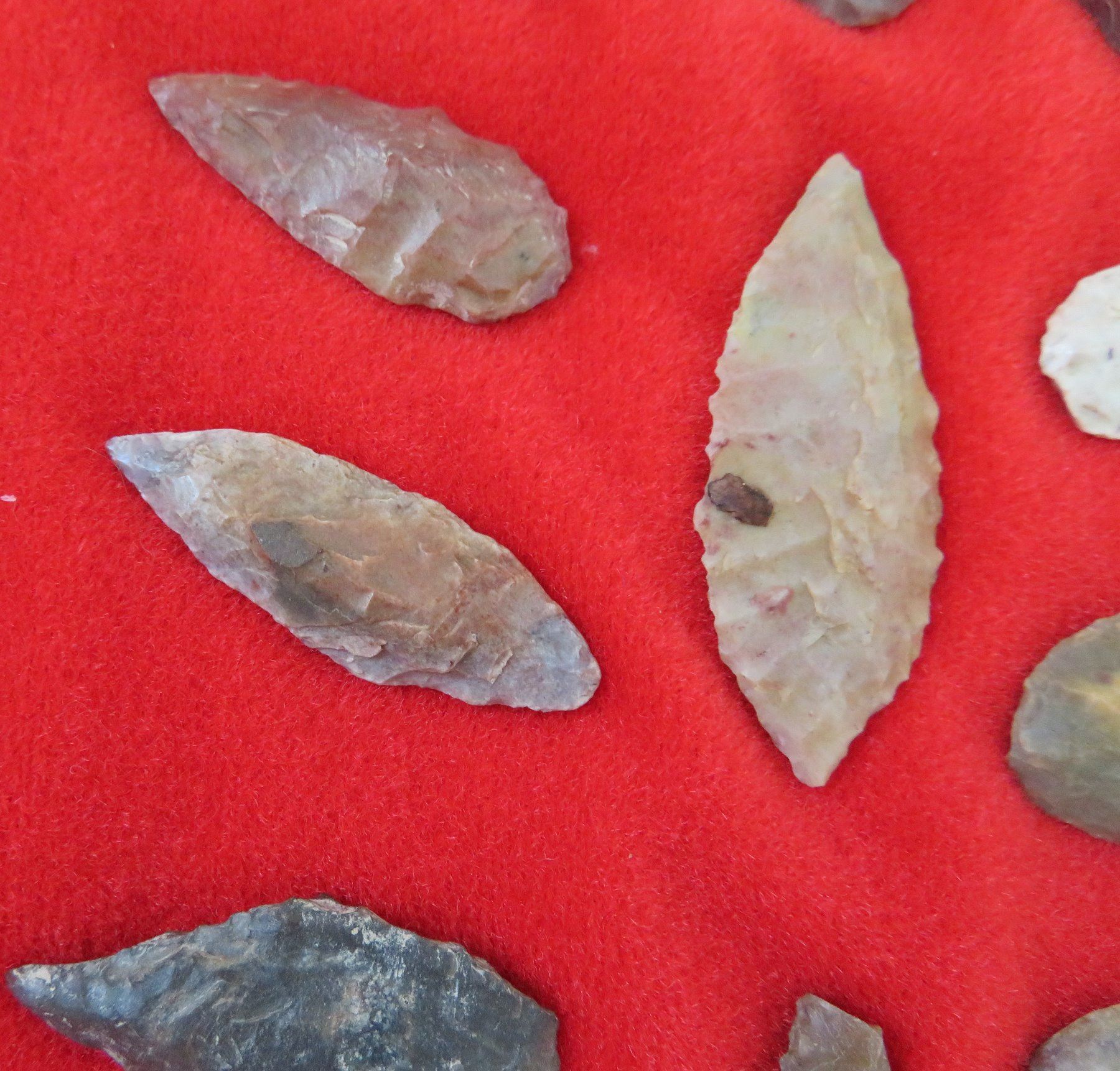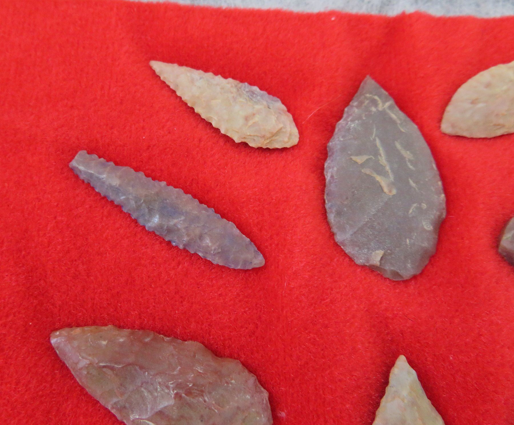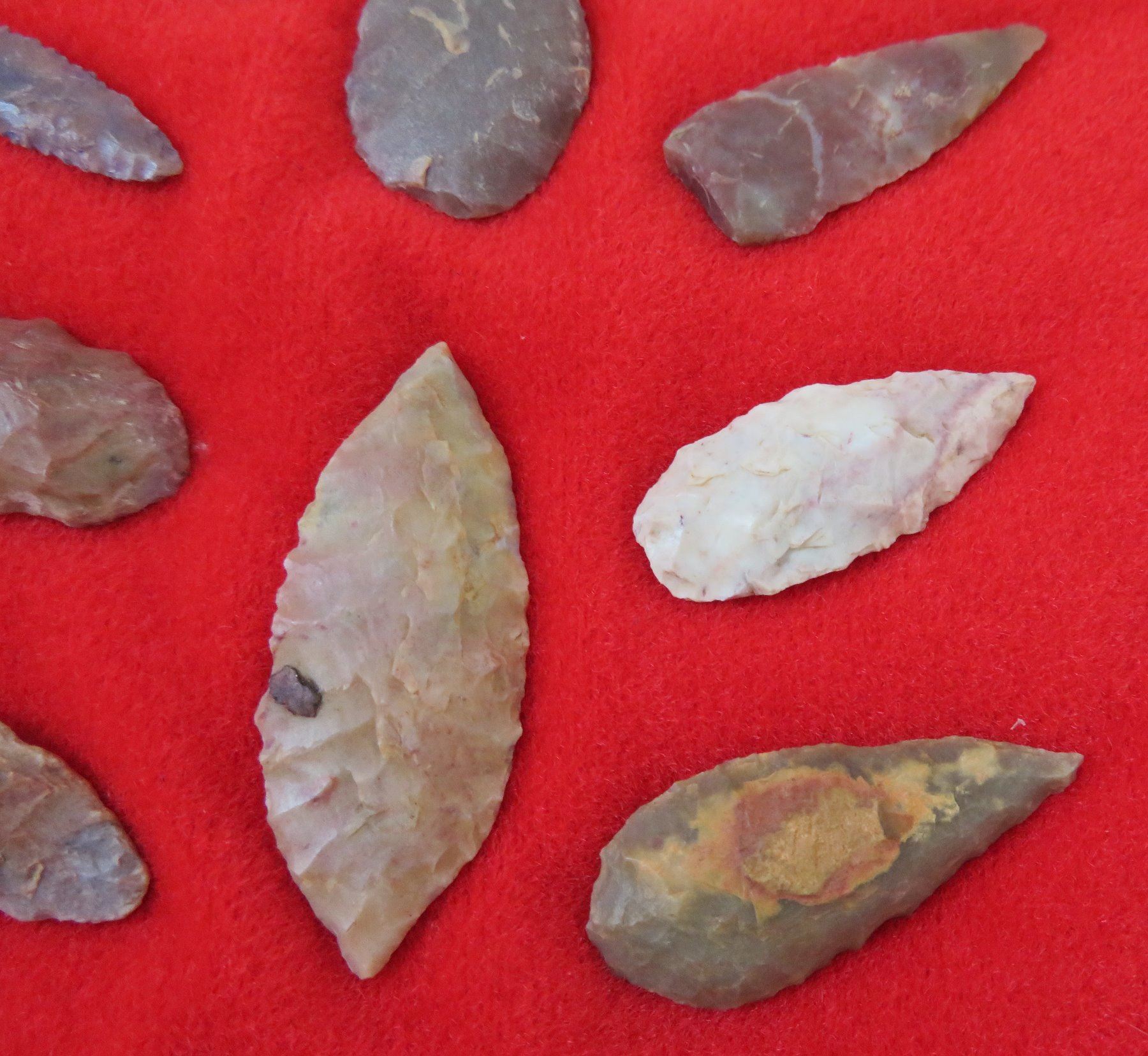 Projectile Points, neolithic period. Made of chert, the largest measures 2". Sahara Desert, Africa. Frame not included. Condition: Good, see images. Shipping: $16.50 w/insurance and signature.