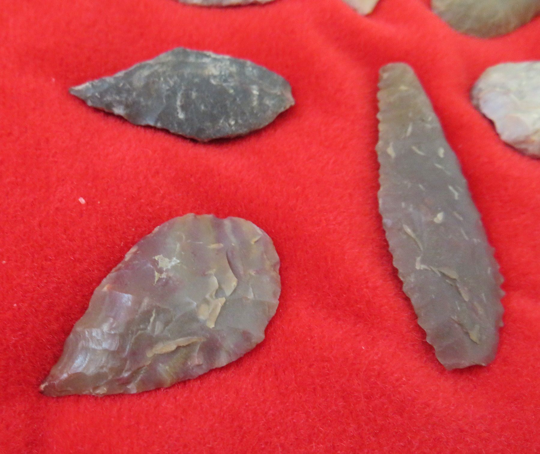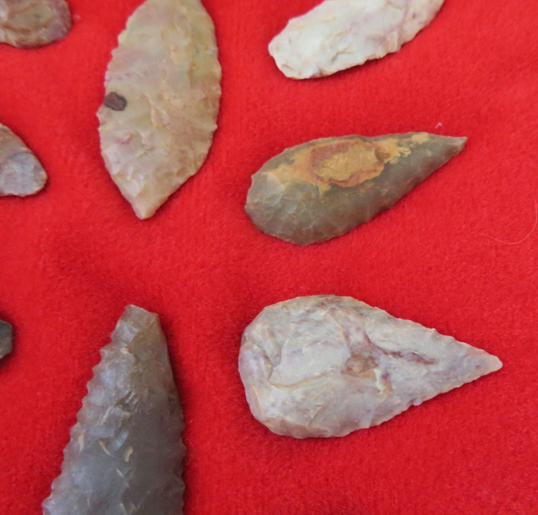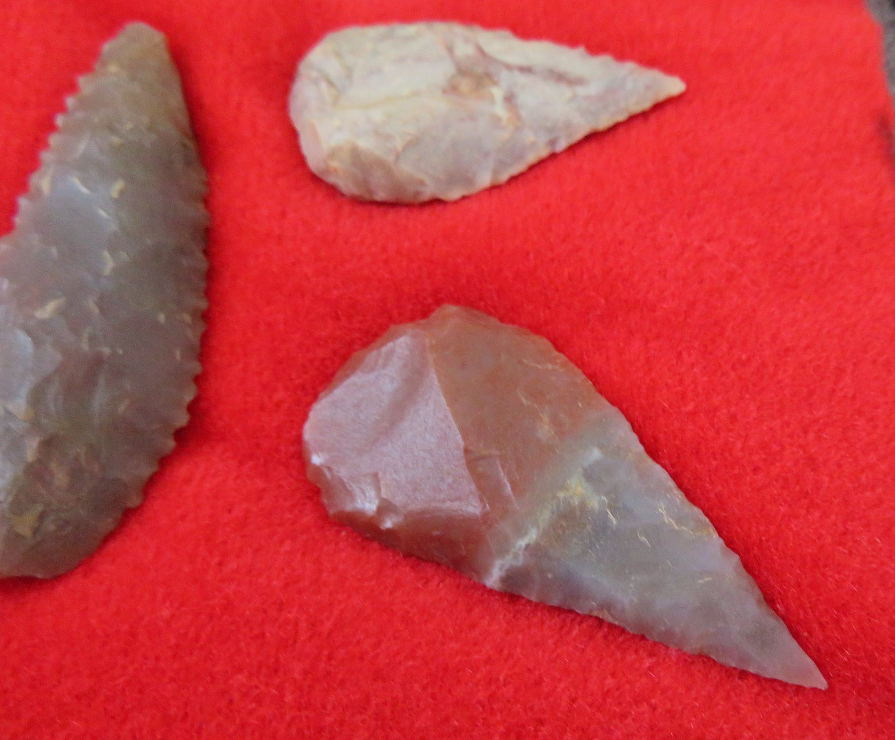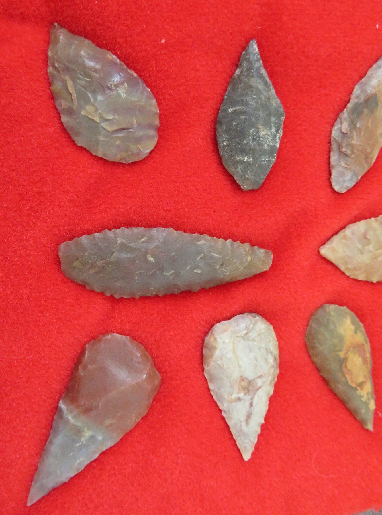 Projectile Points, neolithic period. Made of chert, the largest measures 2". Sahara Desert, Africa. Frame not included. Condition: Good, see images. Shipping: $16.50 w/insurance and signature.
