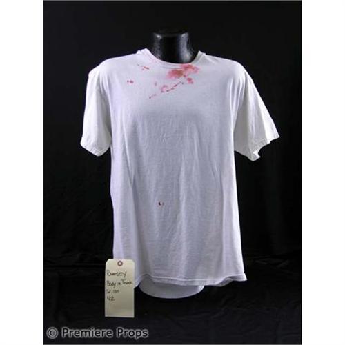 From the set of the teen slasher, Prom Night, this is the Ramsey Body in Trunk's screen worn white cotton "Hanes" crew neck t-shirt (*bloody / size L). Includes the original wardrobe tag!