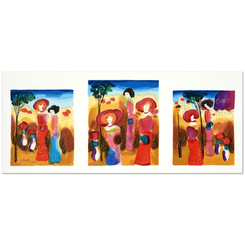 "Promenade" is a limited edition triptych serigraph on paper, numbered hand signed by Moshe Leider. Includes Certificate of Authenticity! Measures approx. 25.5" x 11.5" (with border), 24" x 9" (all three images).