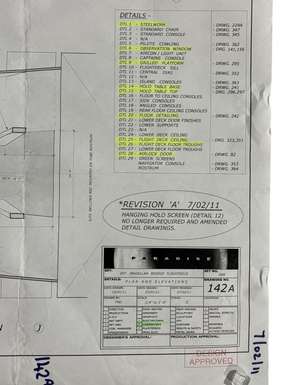 Original production blueprint of the "Bridge Flightdeck" from the Ridley Scott directed science fiction film 'Prometheus' (2012), where following clues to the origin of mankind, a team finds a structure on a distant moon, but they soon realize they are not alone.