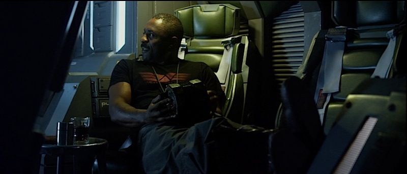(Twentieth Century Fox, 2012) This shirt was acquired by the production for use by Idris Elba as "Janek". The size large T-shirt features the Weyland Corp. logo across the chest and is slightly distressed for filming.