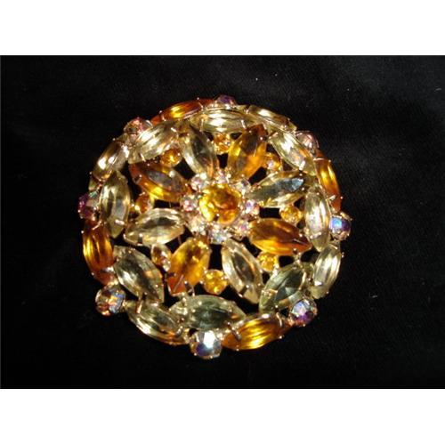 Prong Set Amber Colored Flower Brooch, 3 Row #1469842