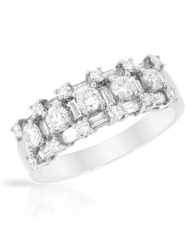Prong-set Baguette & Round Diamond Ring in 18K White Gold | 205620 6.5 Grams, featuring 0.71 BAGUETTE ct 17 0.41 ct 16 ct 18 ct