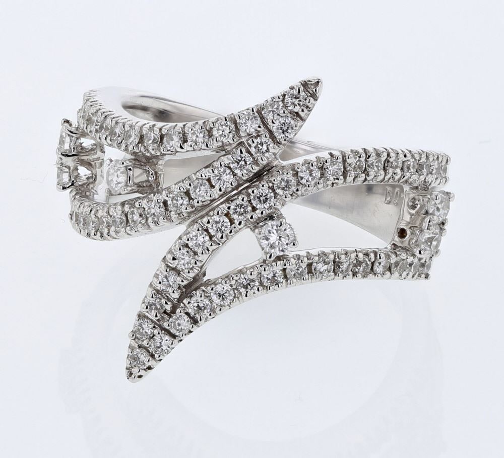 REF-156X8Y ---- Prong-set Bypass Leaf Diamond Ring in 18K White Gold