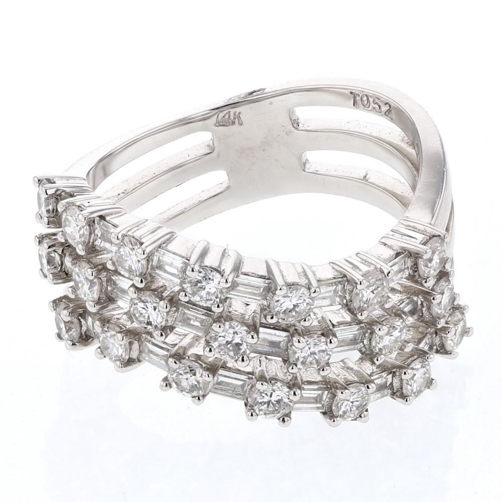 REF-198X4Y ---- Prong-set Round & Baguette Ring in 14K White Gold