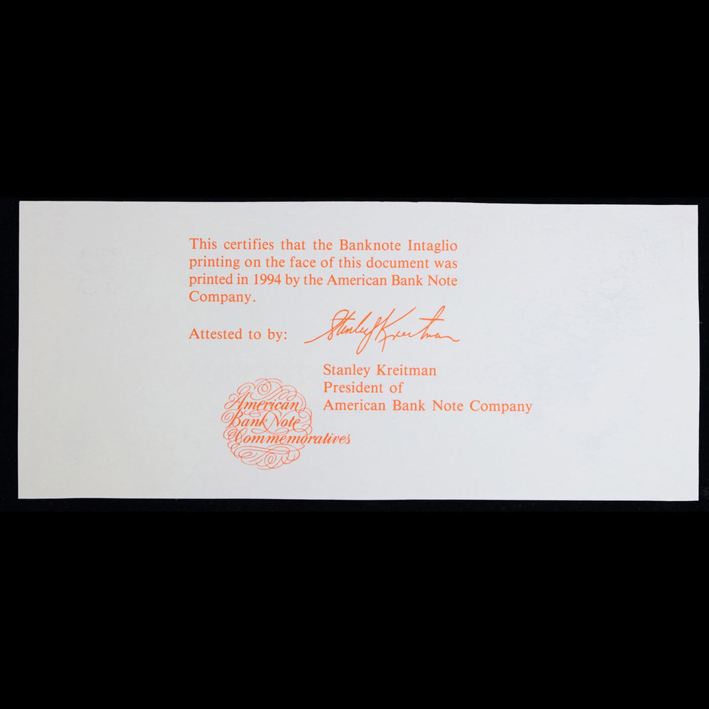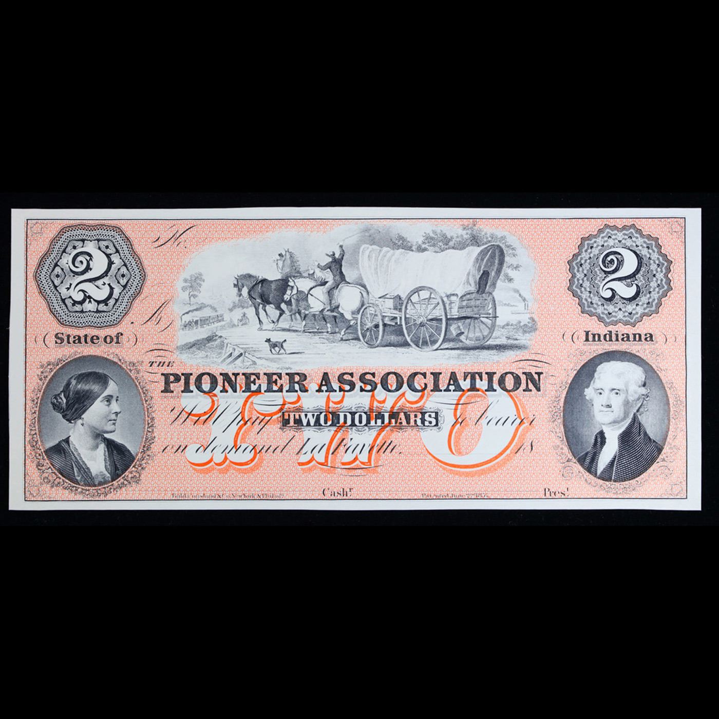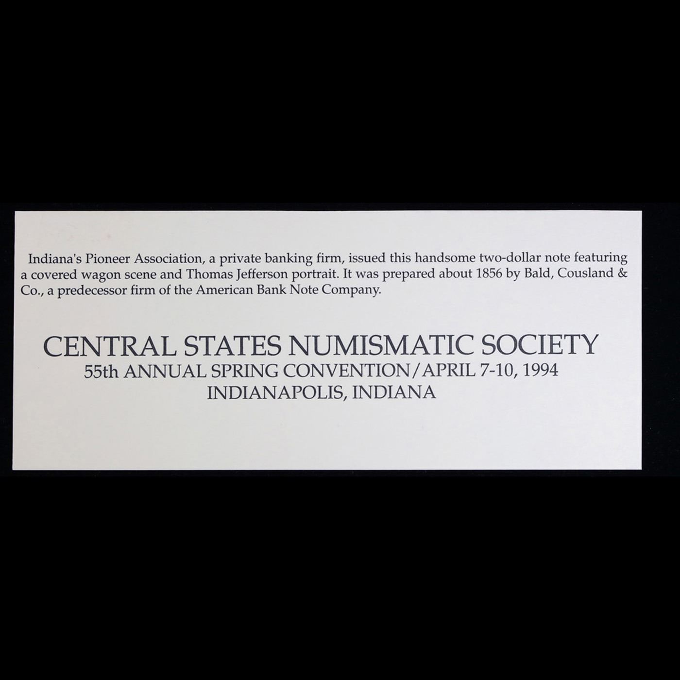 Proof 1856 $2 Indiana Pioneer Association Bank Note, Obverse BEP Intaglio Souvenir Card SO-127, CSNS