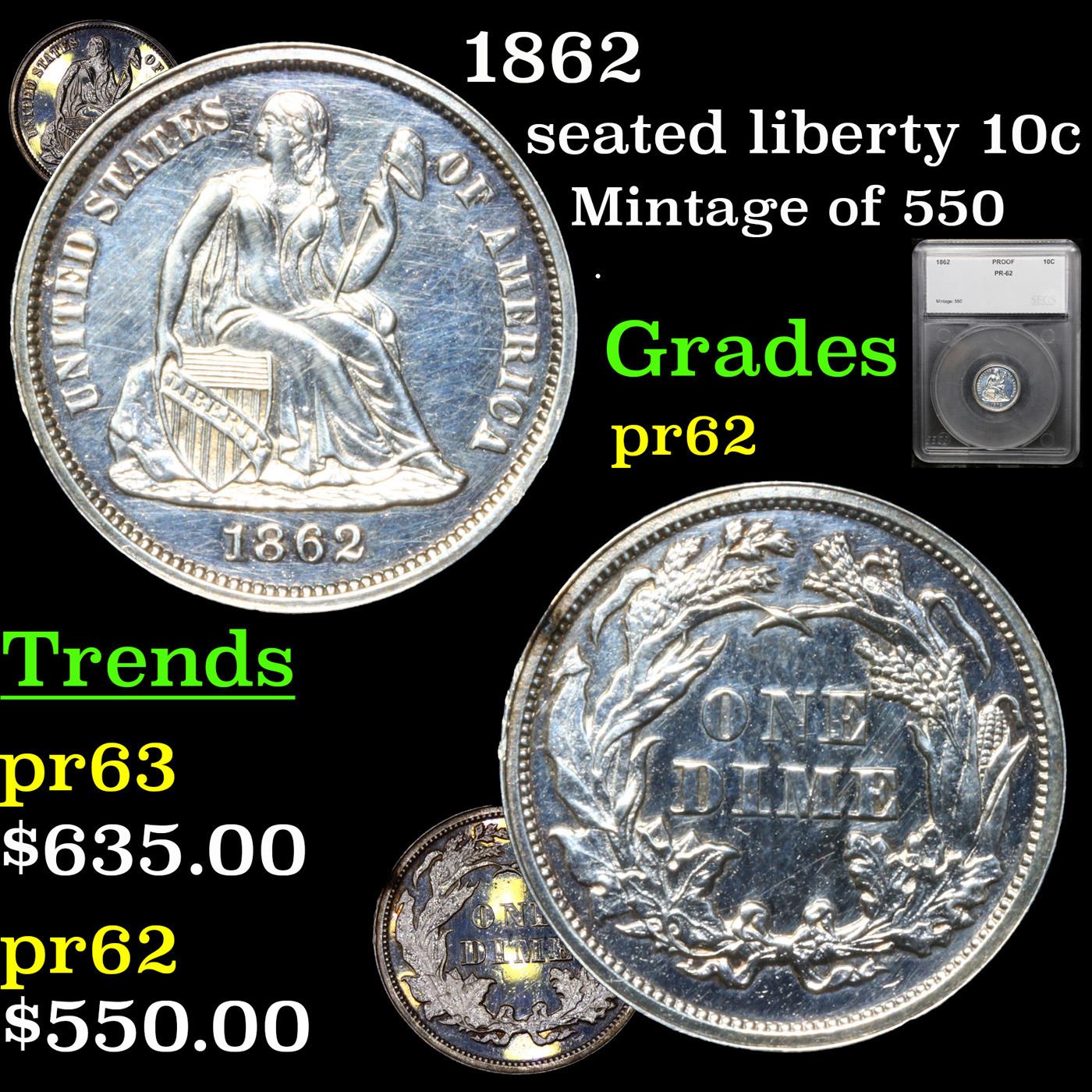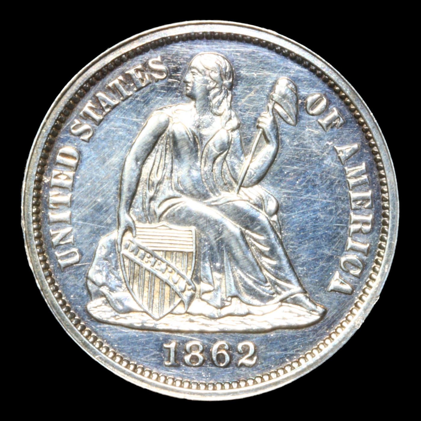 1862 Seated Liberty Dime 10c Graded pr62 By SEGS.