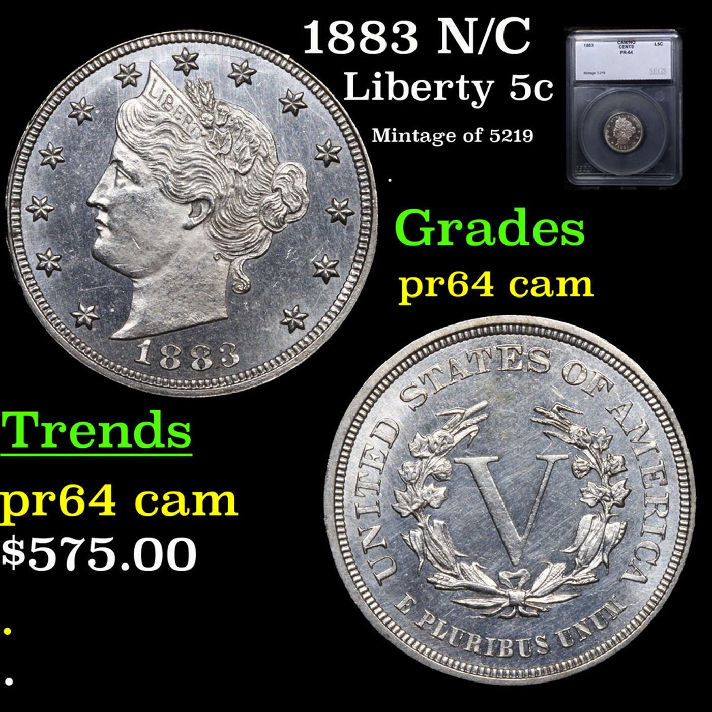 1883 Shield Nickel 5c Graded pr64 cam BY SEGS.