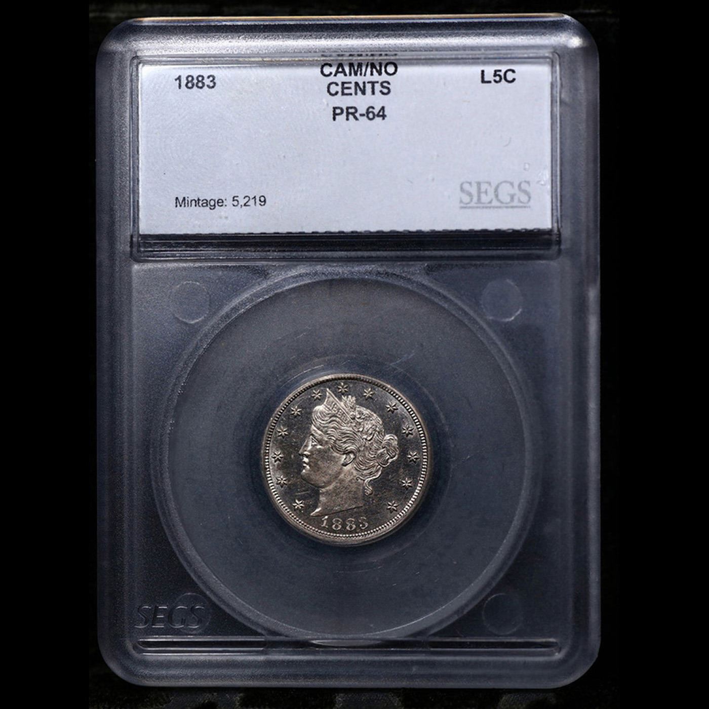 1883 Shield Nickel 5c Graded pr64 cam BY SEGS.