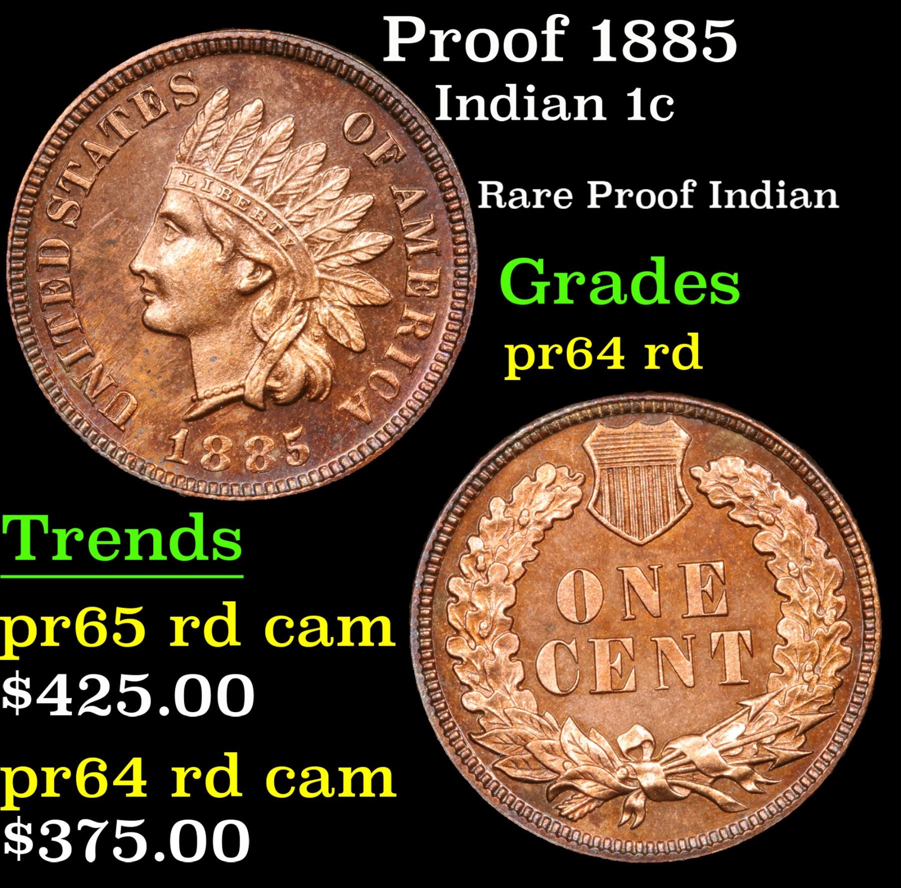 Proof 1885 Rare Proof Indian . Indian Cent 1c Grades Choice Proof Red. A Corey's Pick
