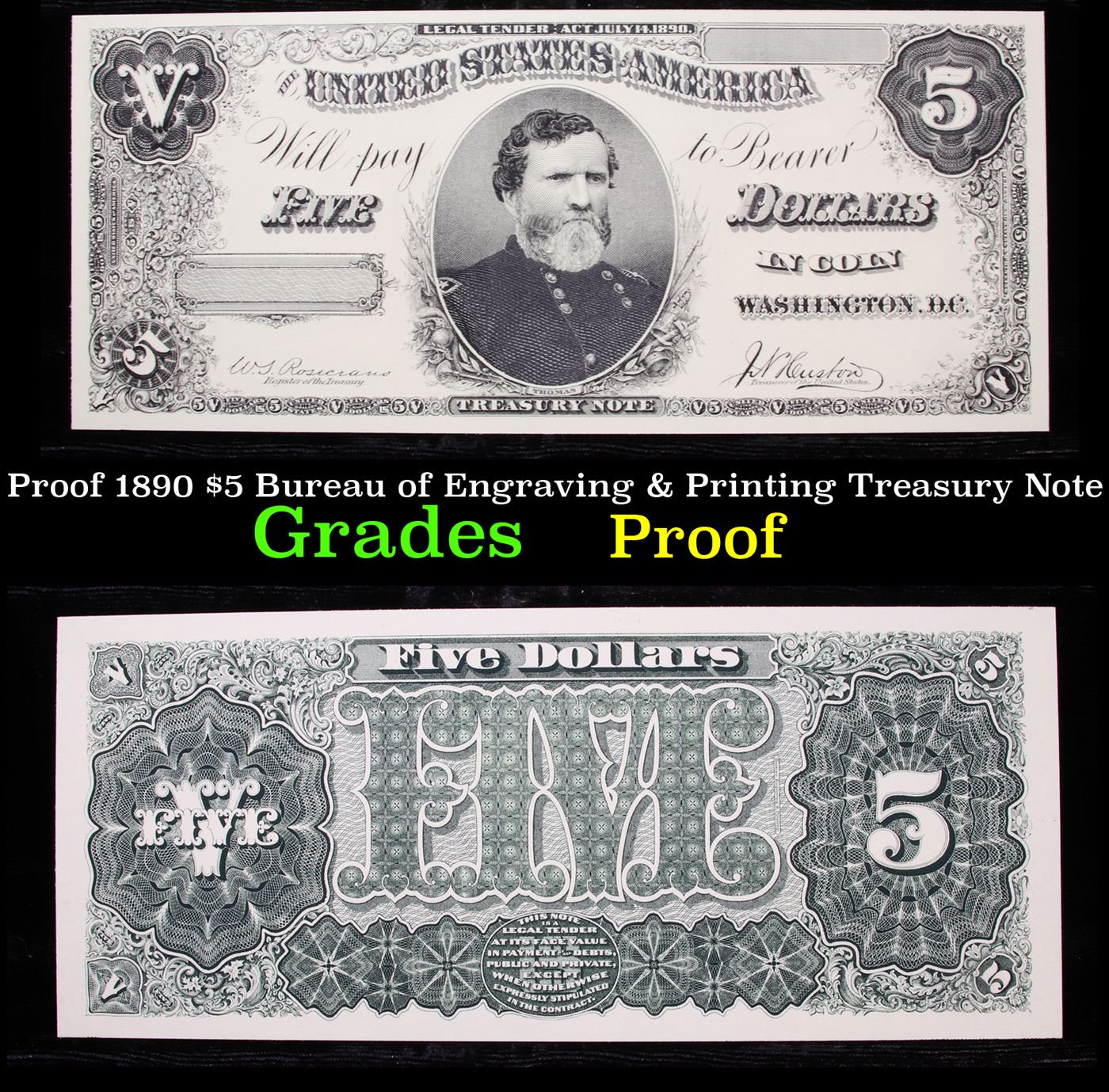 Proof 1890 $5 Bureau of Engraving & Printing Treasury Note Grades Proof.