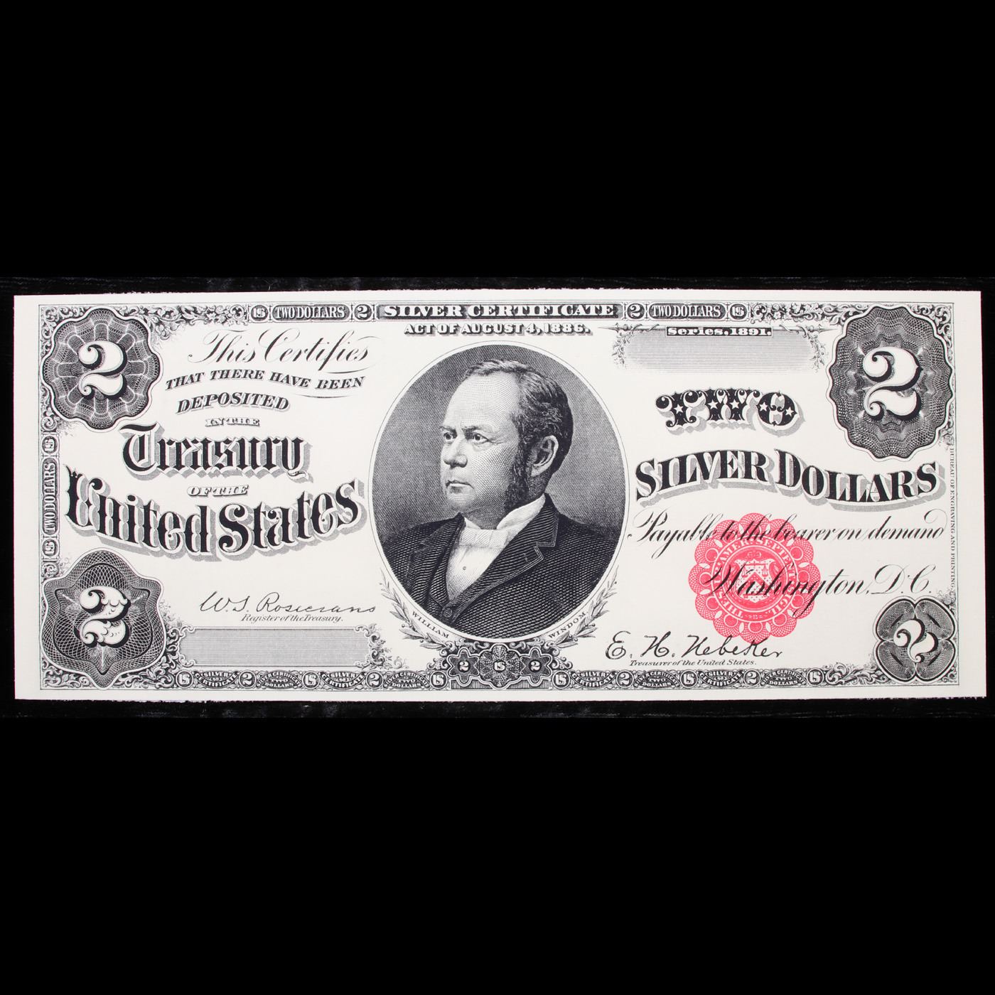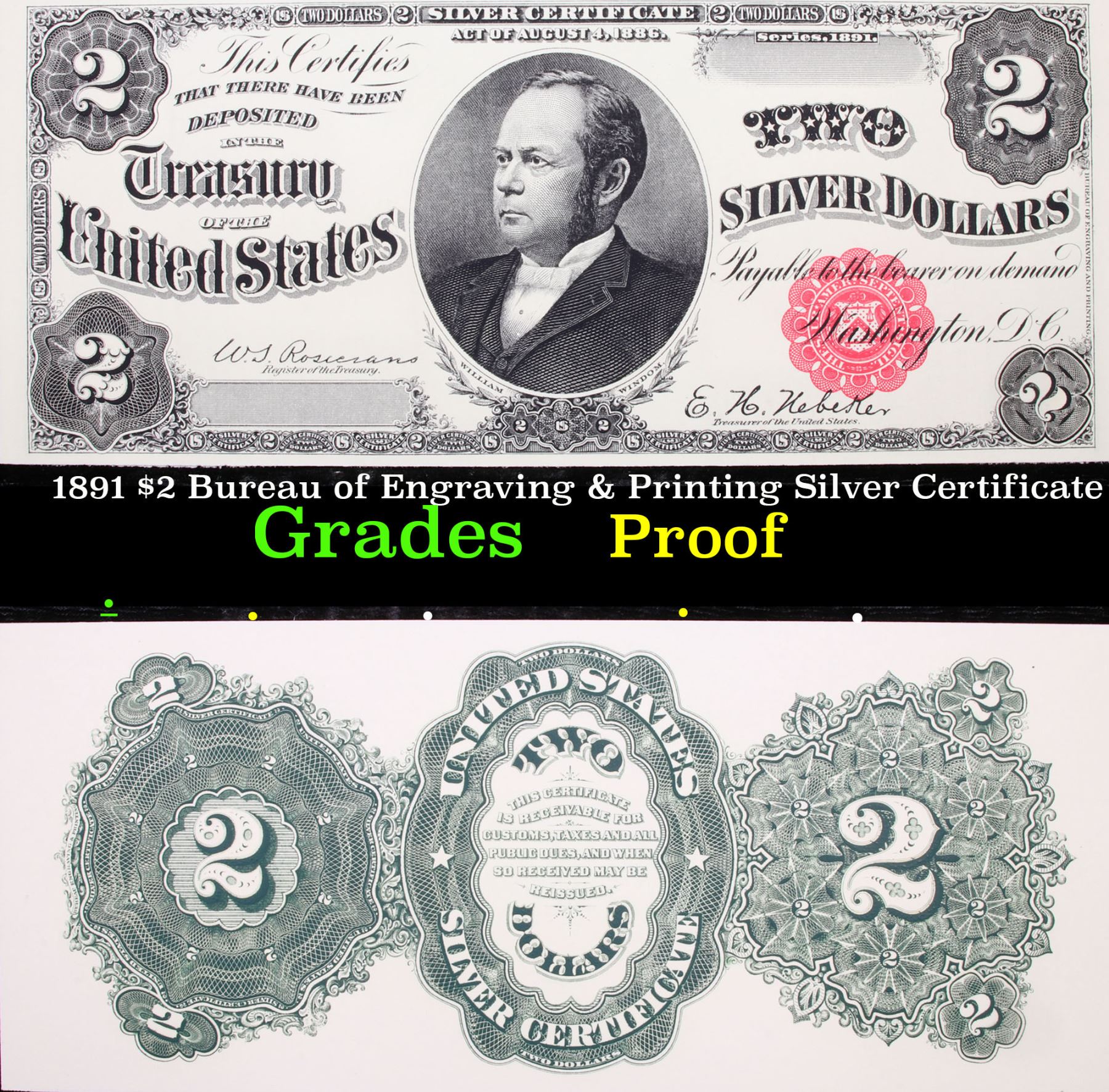 1891 $2 Bureau of Engraving & Printing Silver Certificate Grades Proof.