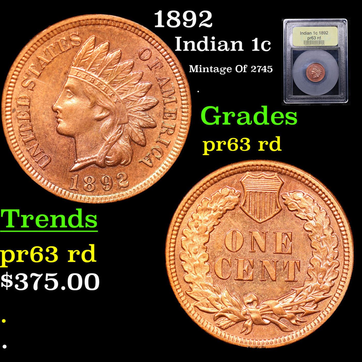 1892 Indian Cent 1c Graded Choice Proof RD By USCG.