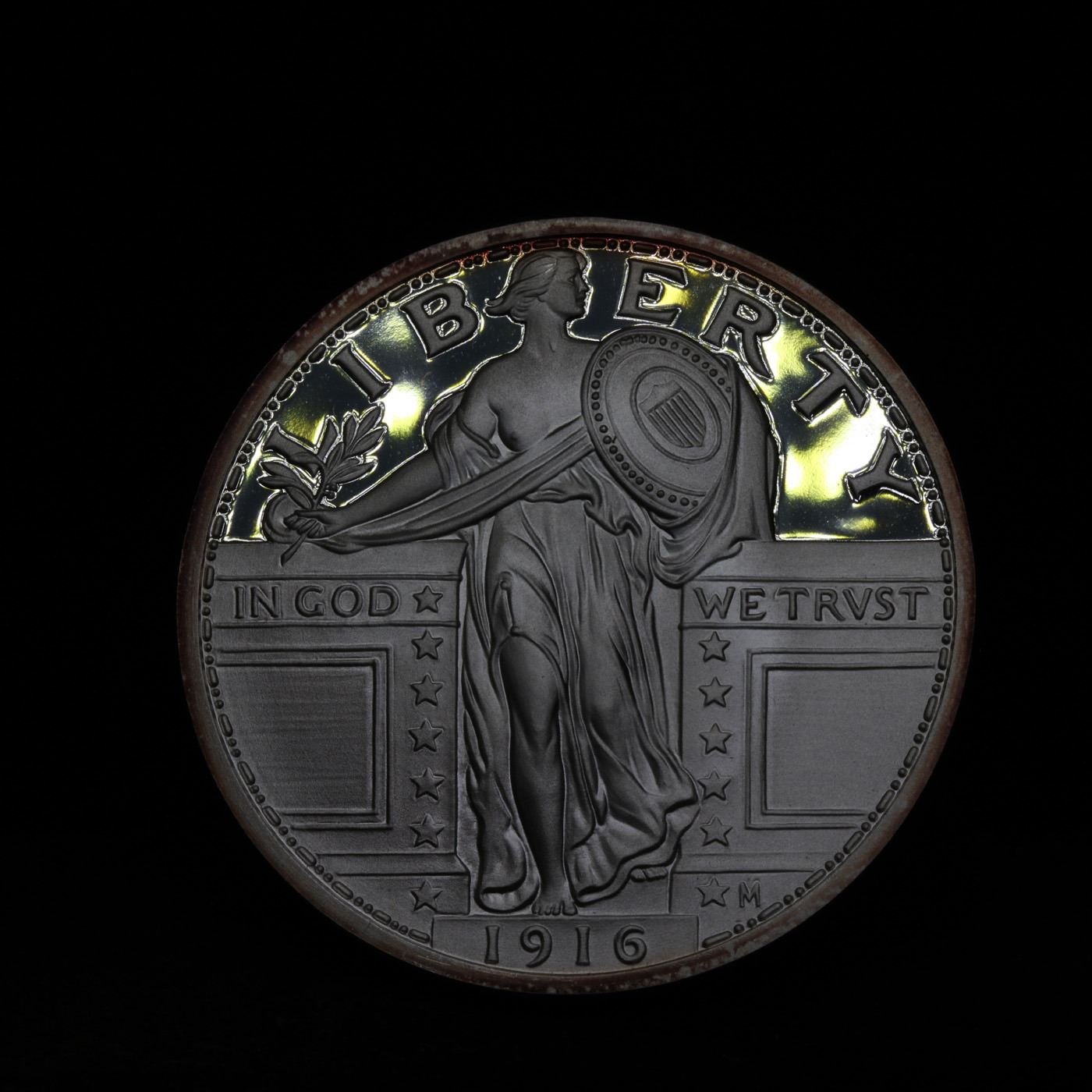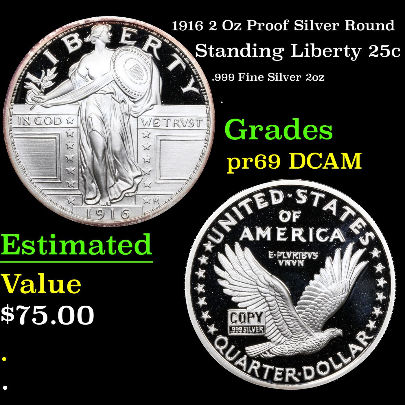 Proof 1916 2 Oz Proof Silver Round Standing Liberty Quarter 25c Grades GEM++ Proof Deep Cameo