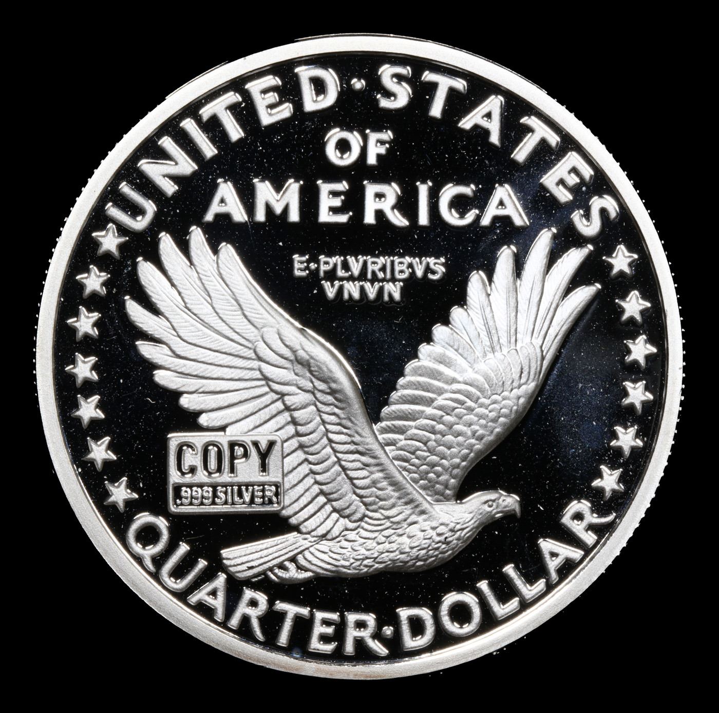 1916 2 Oz Proof Silver Round Standing Liberty Quarter 25c Grades GEM++ Proof Deep Cameo.