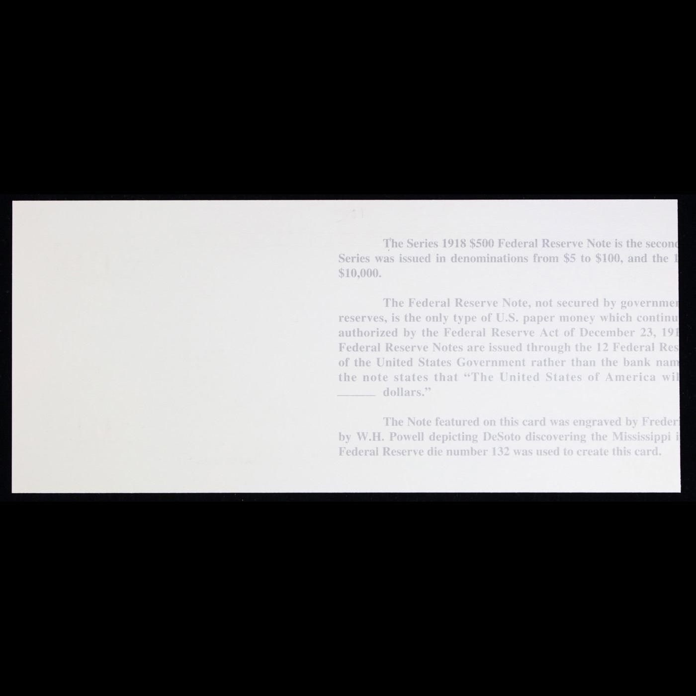 Proof 1918 $500 Federal Reserve Note - Reverse BEP Intaglio Souvenir Card B-171, IPMS '93 Grades Pro