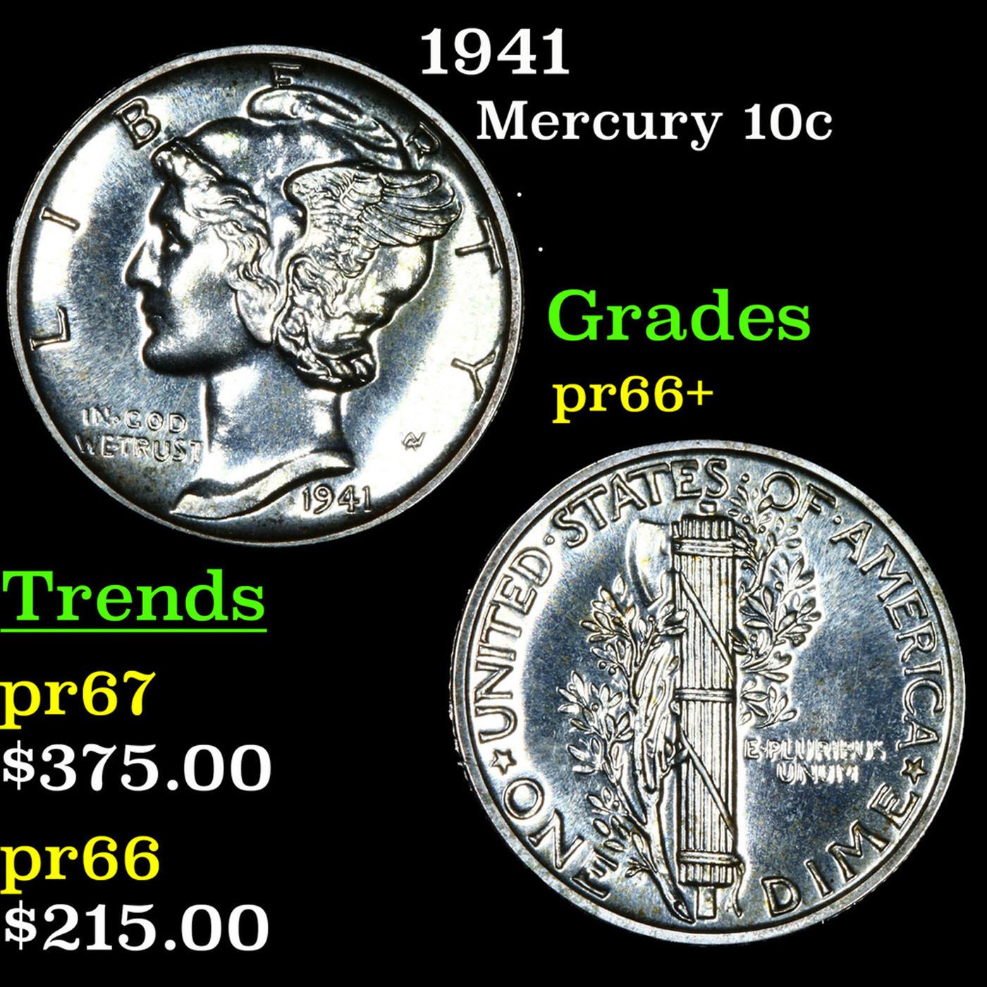 1941 Mercury Dime 10c Grades GEM++ Proof.
