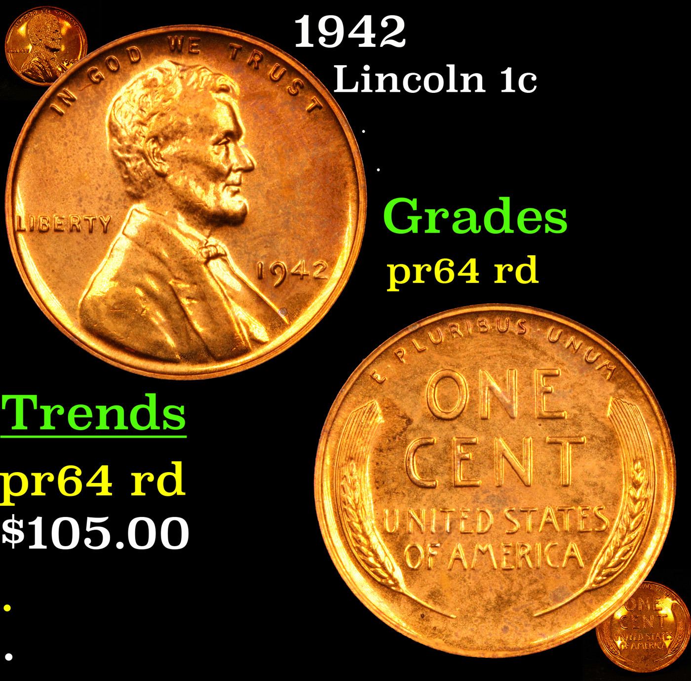 1942 Lincoln Cent 1c Grades Choice Proof Red.
