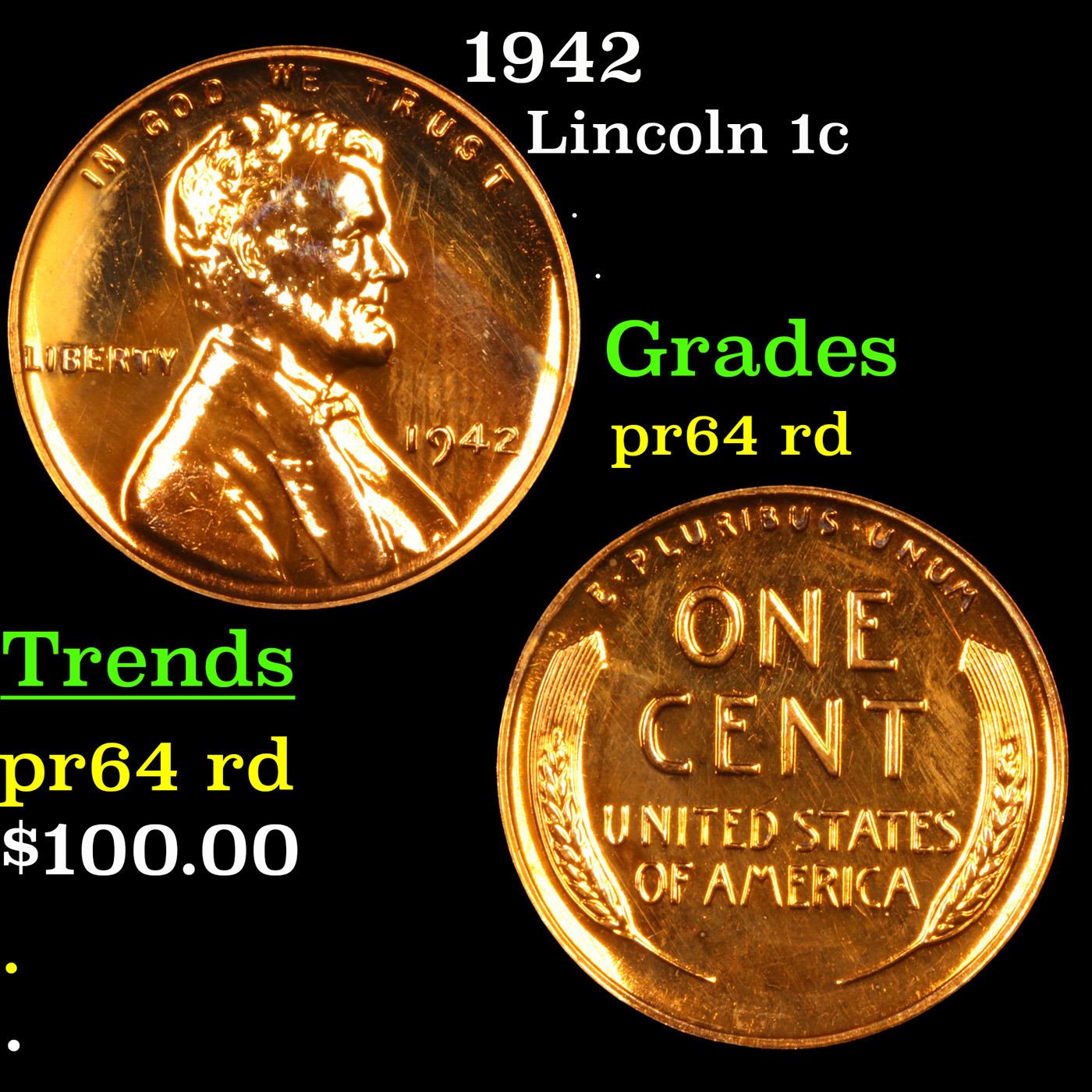 1942 Lincoln Cent 1c Grades Choice Proof Red.