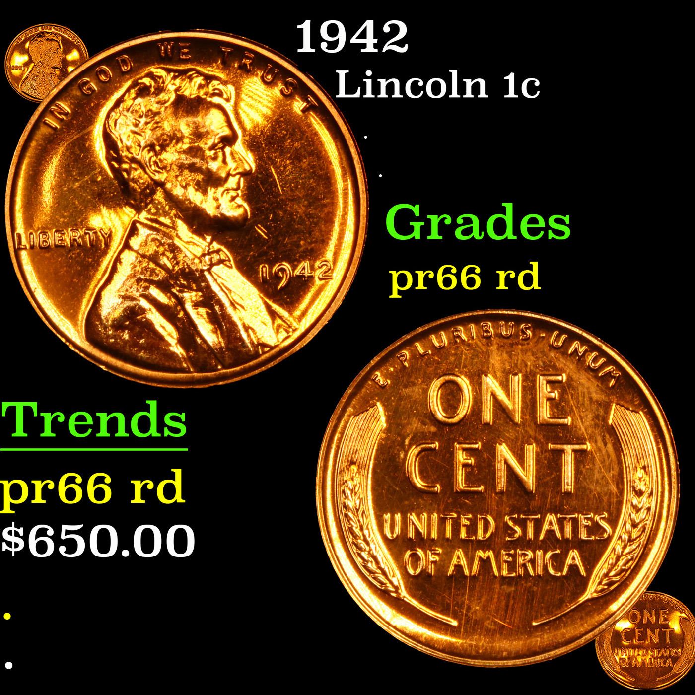 1942 Lincoln Cent 1c Grades Gem+ Proof Red.