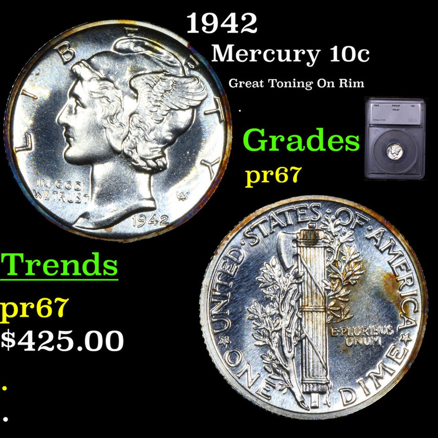 1942 Mercury Dime 10c Graded pr67 By SEGS.