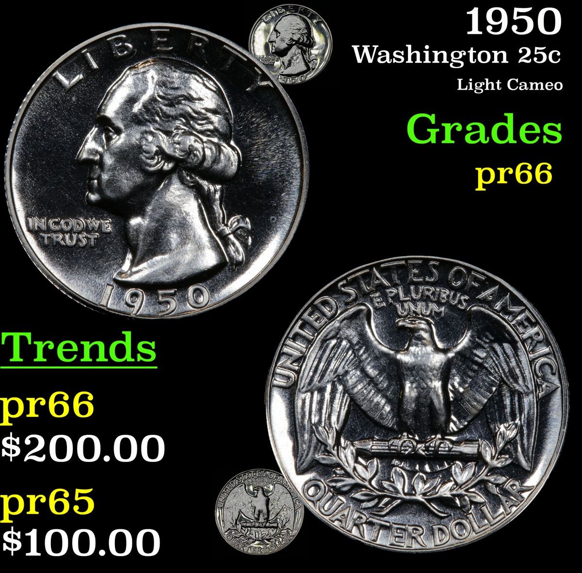 1950 Washington Quarter 25c Grades GEM+ Proof.