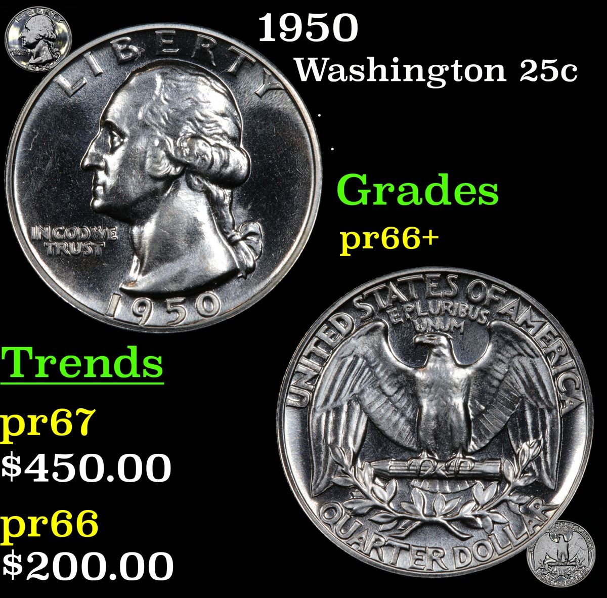 1950 Washington Quarter 25c Grades GEM++ Proof.