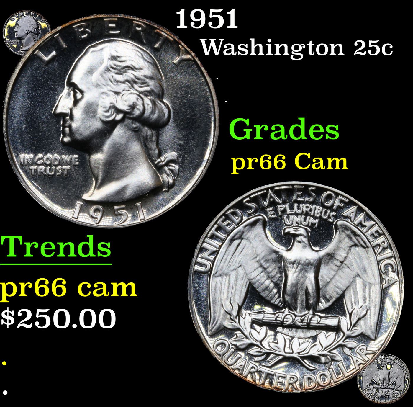 1951 Washington Quarter 25c Grades GEM+ Proof Cameo.