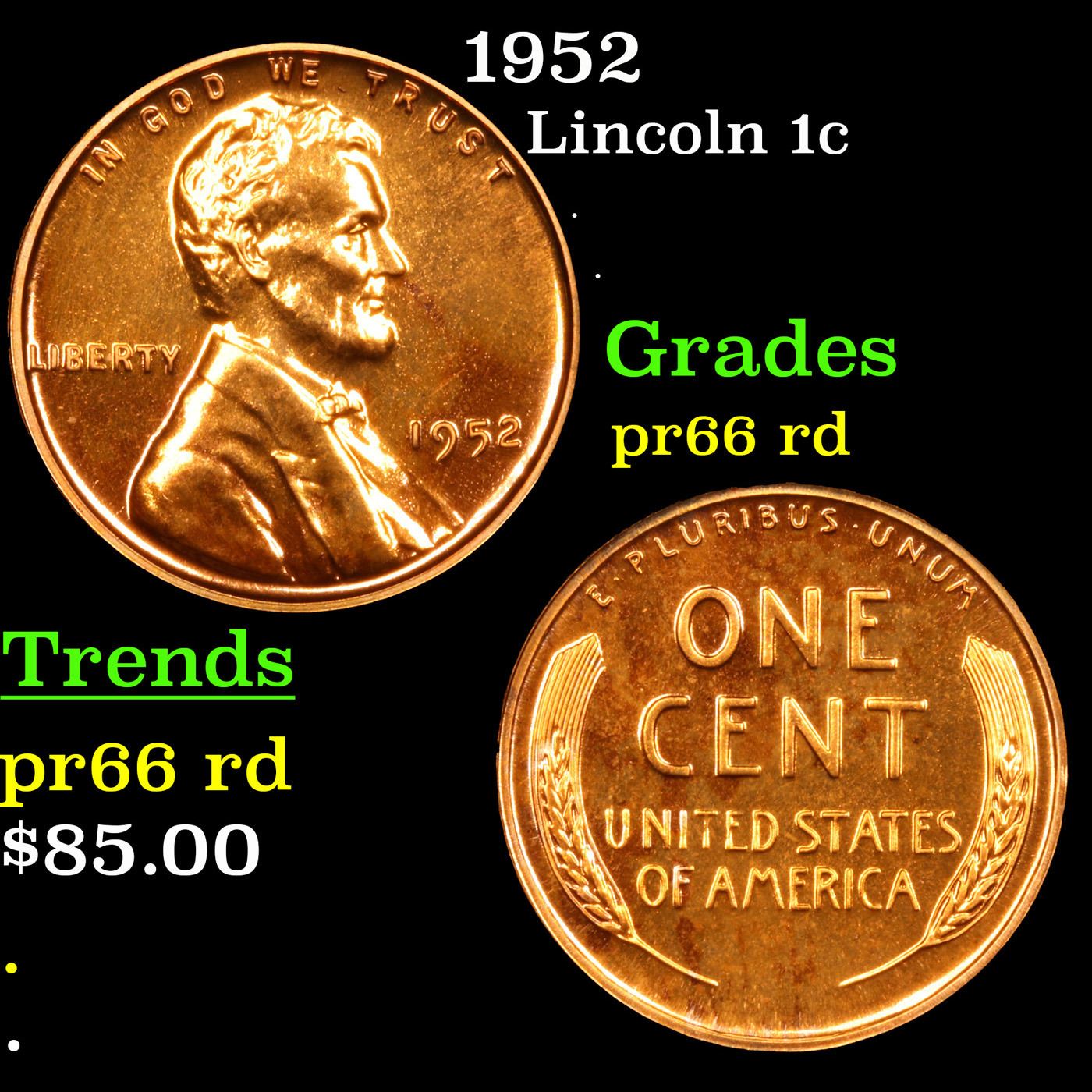 1952 Lincoln Cent 1c Grades Gem+ Proof Red.