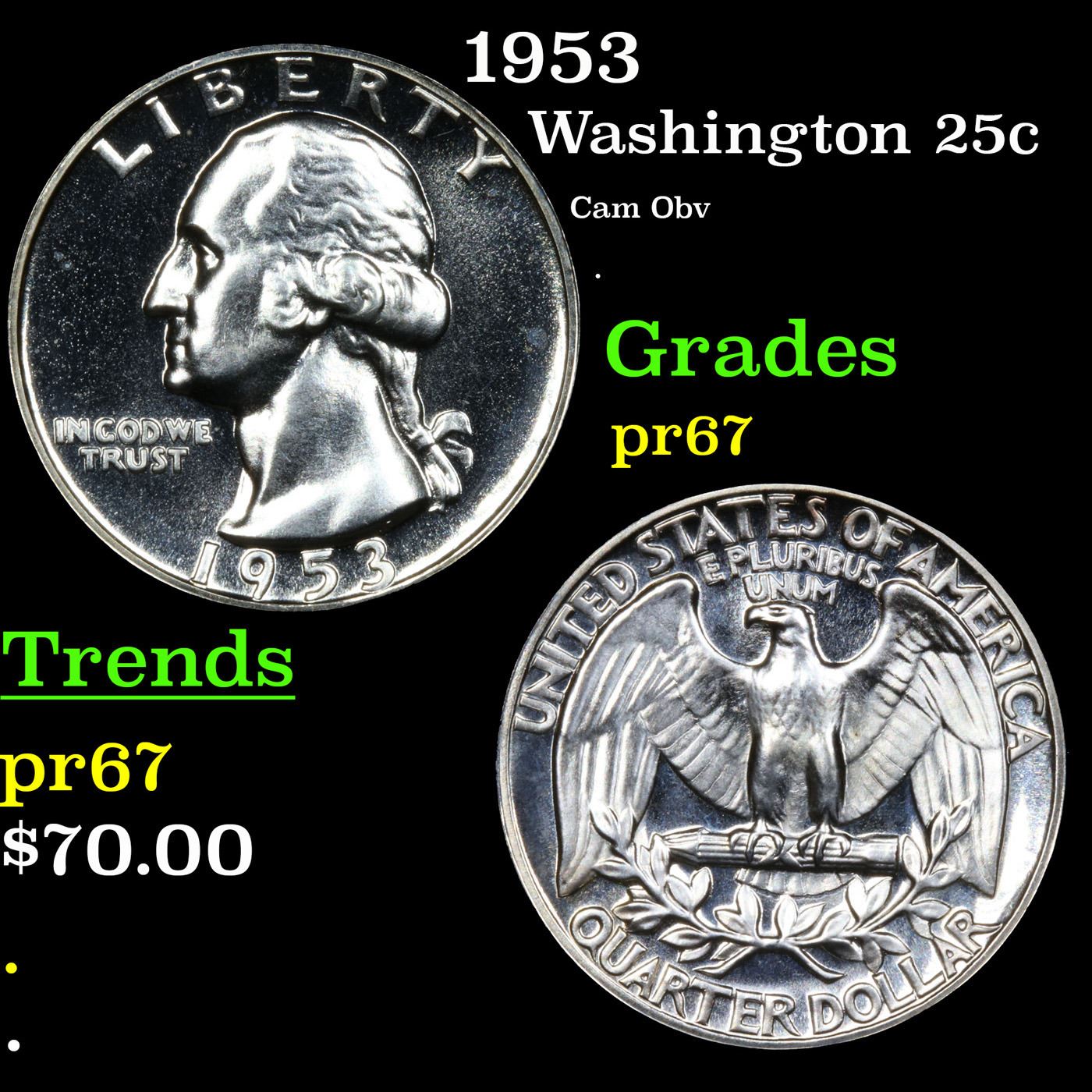 1953 Washington Quarter 25c Grades GEM++ Proof.