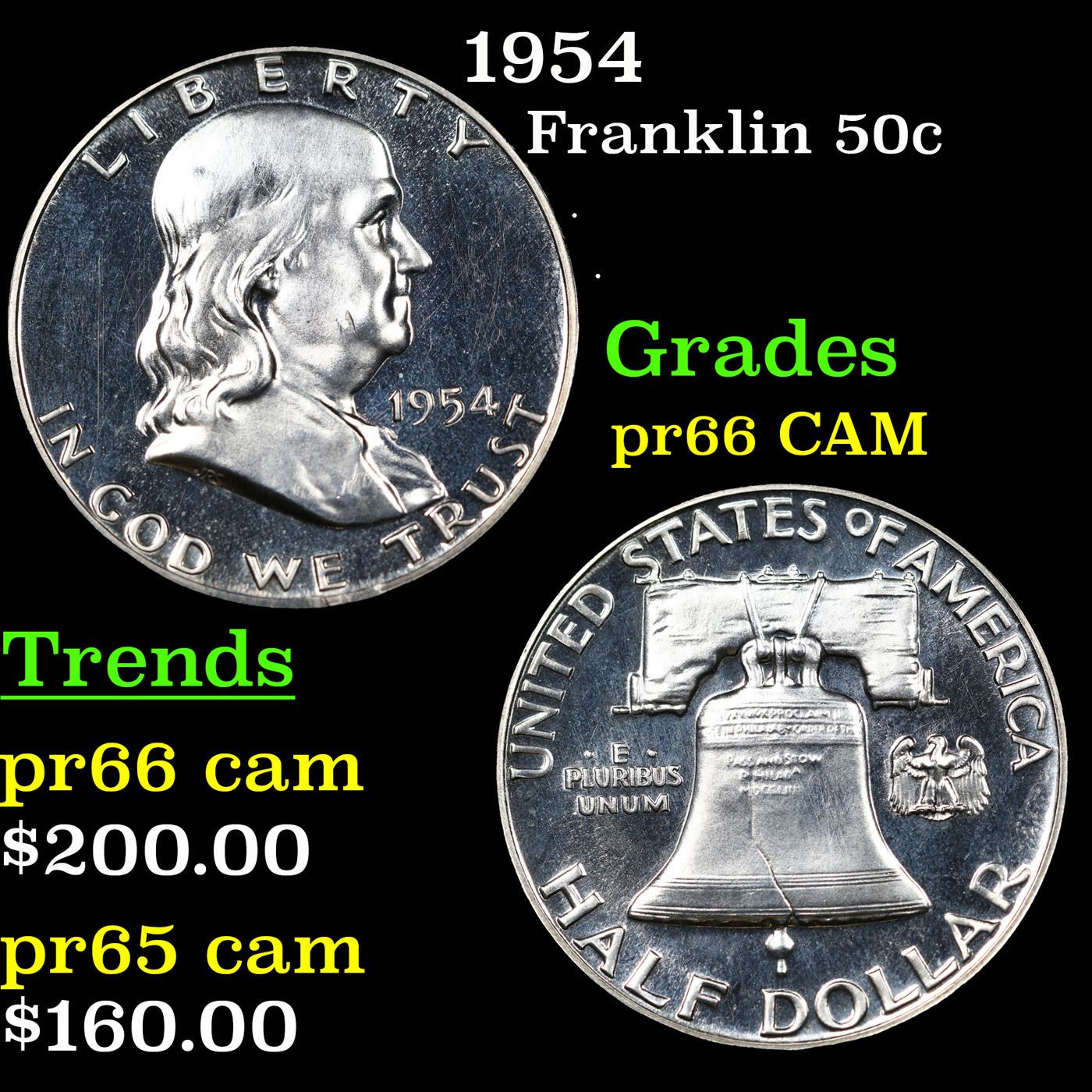 1954 Franklin Half Dollar 50c Grades GEM+ Proof Cameo.