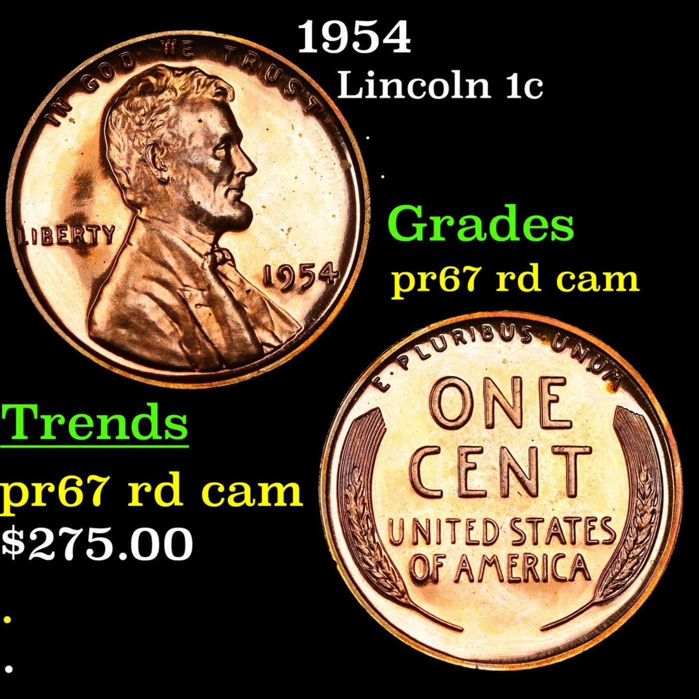 1954 Lincoln Cent 1c Grades Gem++ Proof Red Cameo.